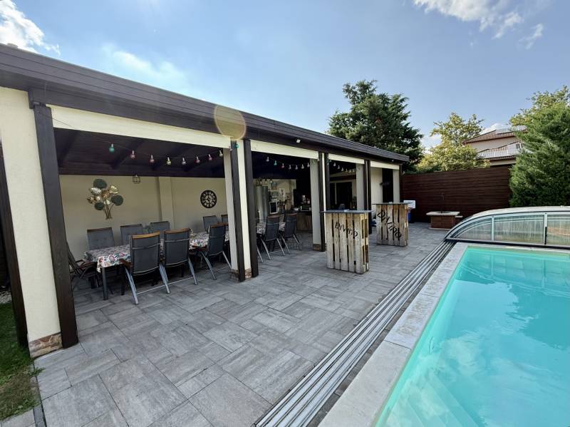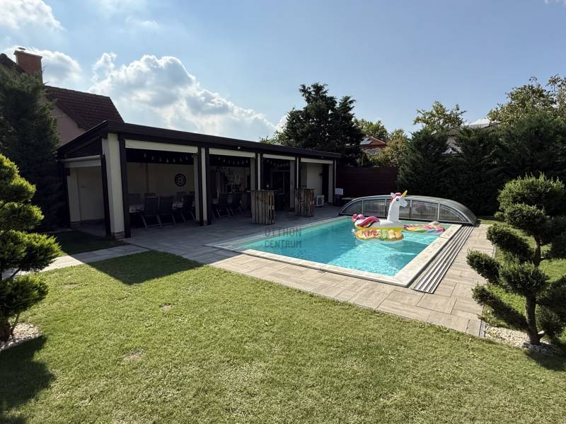 Debrecen egyik legkedveltebb, csendes és zöldövezeti részén, a Csapókertben, közvetlenül a Liget tér szomszédságában kínálunk eladásra egy 2019-ben épült, prémium felszereltségű ingatlant.Főbb paraméterek:-Telek területe: 820 m²-Lakóterület: ~200 m²-Szobák: 4 tágas hálószoba-Nappali + amerikai konyha: 50 m², elegáns és világos központi tér-Fürdőszobák: 2 db-Illemhelyek: összesen 4 db (külön vendég-WC + udvari toalett)-Gardrób és kamra a maximális praktikumért-Dupla garázs: 33 m², elektromos autó fali töltővel, teljes falhosszon beépített szekrényekkel-Üvegterasz: 20 m², négy évszakos használatra kialakítvaLuxus és kényelem:-Padlófűtés az egész házban-Okos árnyékolástechnika-Riasztó- és kamerarendszer-15 cm grafitos szigetelés-10 kW napelem rendszer-Szülői hálóban infra szauna-Dolby atmos házimozirendszer+ motoros vetítővászonKültéri élmények:-7,5 méteres, hőszivattyúról hűtött-fűtött medence-Teraszon jakuzzi a tökéletes kikapcsolódásért-Telepített robotfűnyíró és automata öntözőrendszer, mely fúrt kútról és városi vízről is üzemeltethető- 13 méter hosszú filagória, mosogatóval, mosogatógéppel, hűtővel, borhűtővel és toalettel- hatalmas kutyakennel a házikedvenceknek - játszótér a legkisebbeknekEz az ingatlan tökéletes választás mindazoknak, akik a belváros közelsége mellett, modern, energiatakarékos és minden igényt kielégítő otthont keresnek. A tágas terek, a magas minőségű kivitelezés, valamint a kültéri wellness szolgáltatások garantálják a maximális kényelmet.Kérdés, időpont egyeztetés esetén várom hívását! |