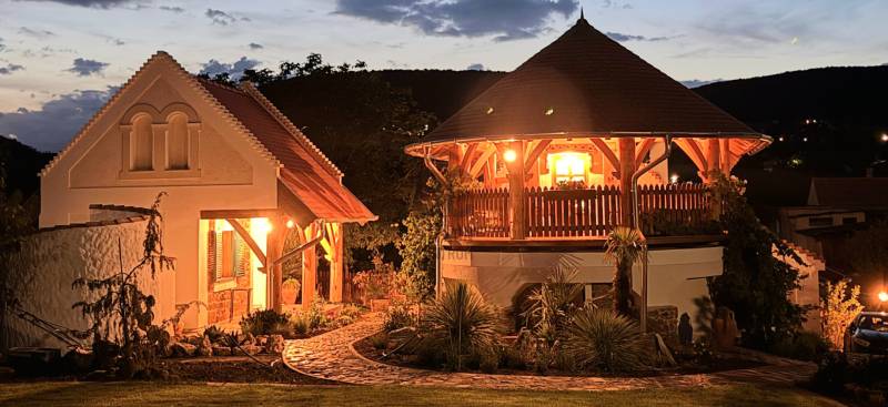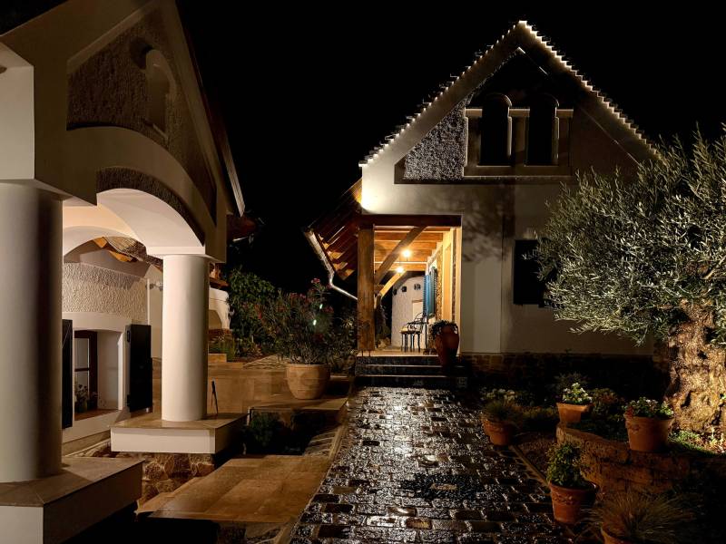 A Balaton - felvidék stílusjegyeit őrző, kézműves magas minőségű anyagok felhasználásával megépült varázslatos ingatlant szeretnék a figyelmébe ajánlani!Minden apró részletre odafigyelve és megálmodva tulajdonosa egy egyedi, melegséget sugárzó otthont valósított meg az 1780- ban épült régi épület felújításával.Szakértelmének és szenvedélyének köszönhetően a mai kor igényeit figyelembe véve a ház teljesen megújult, a gondosan megtervezett kert pedig a mediterrán tájak hangulatát csempészi be a szőlőültetvényekkel övezett ingatlanba.A nádfedésű FŐÉPÜLET két külön bejáratú lakrésszel épült.- a földszinten a központi konyha- étkezőből nyílik a dolgozószoba és a vendégfogadásra tökéletes boltíves pince- a közlekedőn tovább sétálva a hálószobát és a káddal és zuhanyzóval is felszerelt fürdőt találjuk- a konyha tömör fából készült, AEG gépekkel felszerelve- a pincébe vezető kovácsoltvas korlát fogó része fekete dió gyökeréből- a ház előtti mészkő burkolat, a kézműves spaletták mellett a közel 300 éves bejárati pinceajtó mind- mind megállít minket egy pillanatra- a tetőtéri apartman minden kényelmet biztosít vendégeinknek- háromféle fűtési mód: elektromos panelek, gázfűtés padlófűtéssel és hűtő- fűtő klímák- teljes közmű, 3 fázis ( 3×25 A )- kamerás megfigyelőrendszer, riasztó, szélessávú internet- az aparman bejáratával szemben, a pince fölé épült TERASZ faszerkezete kb. 45 m3 fa felhasználásával épült- a teraszról a Balaton és a kert panorámája tárul elénk, ide még egy pizzakemence lett tervezveA főépülettel szemben elhelyezkedő MELLÉKÉPÜLET hódfarkú cserép héjazatot kapott.Kis alapterülete ellenére számos apró, egyedi megoldást fedezhetünk fel: - a terasz kék mintás burkolata mely harmonizál a tető oldalán lévő ablakok üvegfelületével és a spalettákkal- a bejáratnál a tulajdonos kérésére készült kovácsoltvas kerti bútor- homlokzatának kőburkolata a máshol is megjelenő tihanyi bazalttufából lett kialakítva, mely ma már beszerezhetetlenAz autamata kovácsoltvas kapun behajtva a ház felhajtója és a házak közötti közlekedő rész kézzel rakott bazaltkő.A KERT betelepítése előtt teljes földcserén esett át. A gondosan összeválogatott növények tovább növelik az ingatlan esztétikai és eszmei értékét:- kettő több száz éves olajfa, jukkák, pálmák, banánfélék melyek már a mi éghajlatunkon is megélnek- gyümölcsfák ( cseresznye, körte, dió, alma ) szőlő, levendula, örökzöldek...- olasz csempével burkolt, fűtőszálas vízmelegítővel kiegészült bájos kerti zuhanyzó- a kert vízellátásáról öntözőrendszer gondoskodik, ami egy 27 méteres bővizű, fúrt kútról kapja a vizet- az automata kerti világítás este varázsos hangulatot teremt, más karaktert ad az udvarnakElhelyezkedését tekintve könnyen megközelíthető, csendes és nyugodt utcában. A Balaton mellett a Tamás- hegyre is panorámás.Csopak központja, a Balaton és Balatonfüred is pár perc alatt elérhető.A képek nem tudják visszaadni, de talán éreztetik azt hogy egy nem hétköznapi ingatlan, hanem egy merész és értékőrző terv megvalósulása.Várom megtisztelő hívását, egyeztessünk időpontot és járjuk körbe ezt a páratlan ingatlant! |