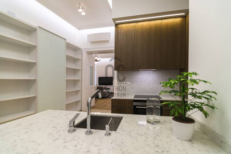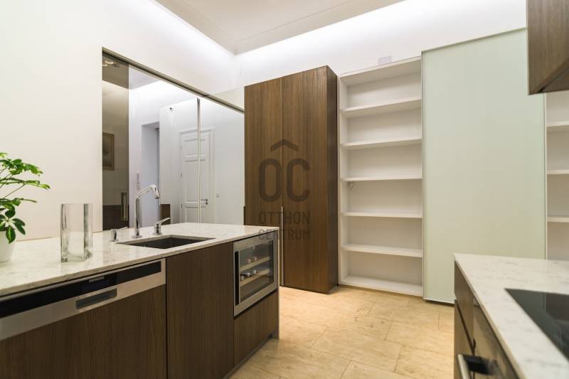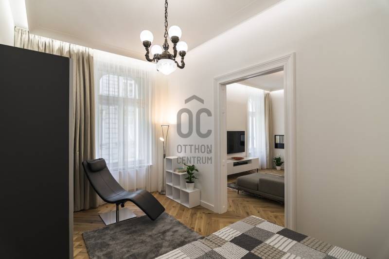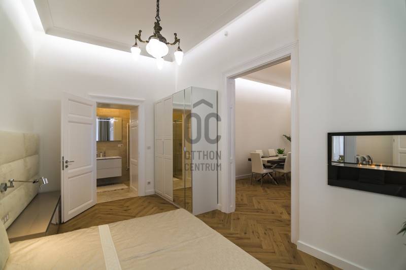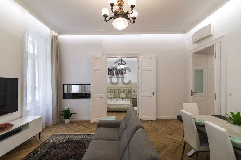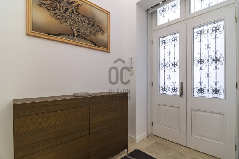 A pesti Broadway egyik impozáns házában, az Andrássy úttól pár lépésre, 1 nappali, 2 háló, 2 fürdő elosztású, felújított lakás eladó.A historizáló, karbantartott, liftes épület közvetlen környezetében található a Moulin Rouge, Thália színház, Operettszínház, Mai Manó ház.A 100 m2 - es lakás a 2. emeleten található, ablakai csendes mellékutcára néznek.Műszakilag és esztétikailag is felújított.Külön szigetelést kaptak a falak a mennyezet. Hő és hangszigetelt ablakok, biztonsági bejárati ajtó.Új tölgyfa parketta a szobákban.Klimatizált, riasztóval felszerelt.A konyhában Siemens háztartási gépek, borhűtő.Fűtése gázkazán, szobákban radiátorokkal, egyéb helyiségekben padló fűtéssel.Mindkét fürdőben van WC.Gőz látvány kályha a nappaliban.Ajánlom otthonnak, befektetésnek. |