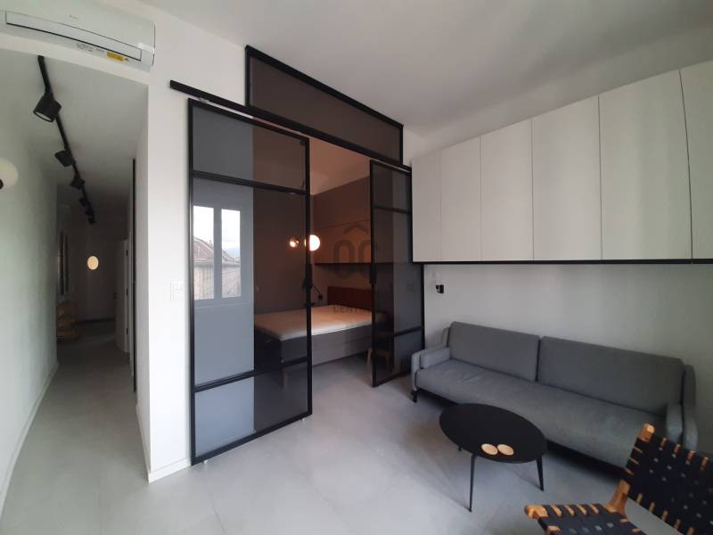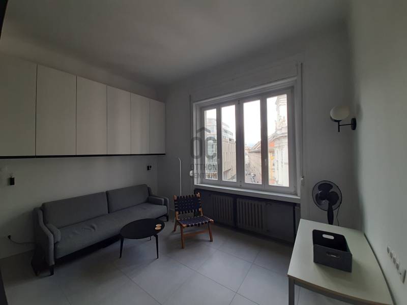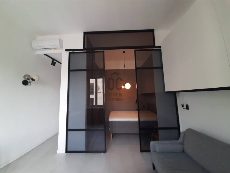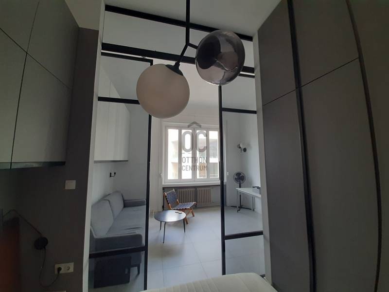 Egy hangulatos tér a belváros közepén, ahol a XVIII. és XXI. század építészete harmóniában együtt él.A tér déli oldalán a Szent Anna templom és a pár éve átadott Emerald Residence modern épülete öleli egymást.Nyugati részén a korai modern szecesszió egyik ikonikus épülete a „Török- bankház” szemléli új szomszédját a Szervita Square Building üveg palotáját.Itt található Lajta Béla, Rózsavölgyi háza is a földszinten üzletekkel, felettük a Rózsavölgyi szalonnal, a felső emeleteken pedig lakásokkal.A lakás a Rózsavölgyi ház 3. emeletén a térre néz.42 m2, a térre néző nappali hátsó frontján üveg tolóajtóval leválasztva egy hálófülke található. Konyhája modern, gépesített, ablakkal a ház belső udvara felé.A fürdőben épített zuhany, henger alakú kézmosóval került kialakításra.A közlekedő mennyezetig érő gardróbjában kapott helyet a mosó – szárító gép.A lakás klimatizált, fűtése házközponti.Ideális választás otthonnak, befektetésnek |