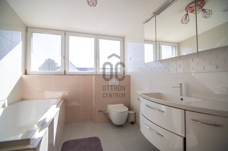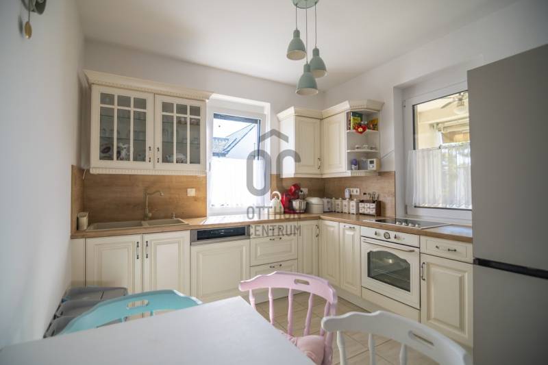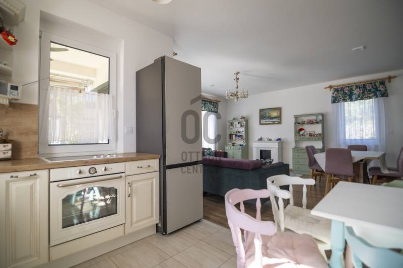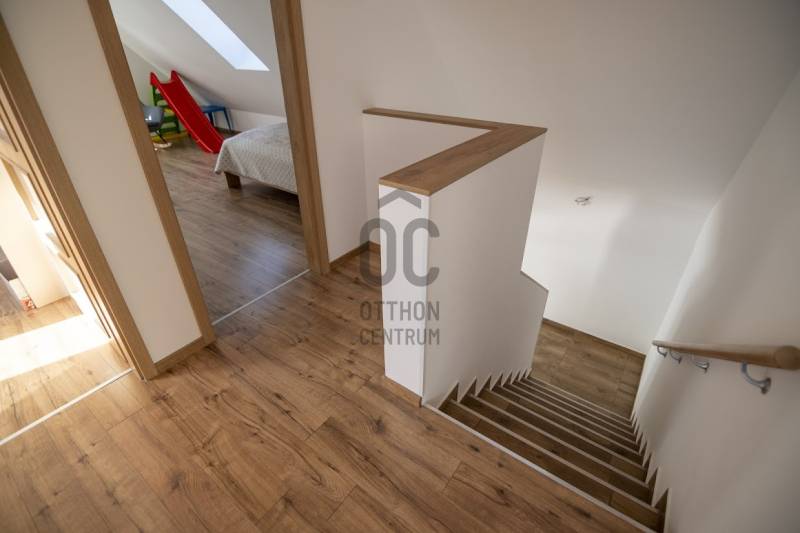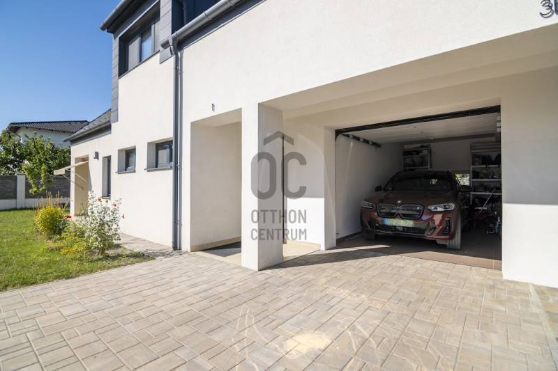 Budafok kedvelt részén, családi házas környéken, új építésű ingatlanok szomszédságában eladó egy 2023-ban épült, nettó 150 m2-es (bruttó 180 m2-es), nappali + 4 szobás ikerház-fél. Műszaki tartalom: - Energetikai tanúsítvány: A+- Napelemes tetőcserép- Hőszivattyús padlófűtés- Mennyezeti hőszivattyús fűtés- Rekuperátoros szellőztetőrendszer előkészítés- 38 cm-es Porotherm tégla falak, 10 cm-es grafitos szigeteléssel- 3 rétegű üvegezéssel rendelkező antracit műanyag nyílászárók- Elektromos alumínium redőnyök, rovarhálóval- Elektromos autótöltés előkészítés- Riasztórendszer előcsövezve- Kábel TV, internet- Prémium minőségű parketta (10 mm vastag)- Garázs, térkövezett kocsibeállóElrendezése: Földszint: - nappali (27 m2), kertkapcsolatos terasszal (7 m2)- étkező-konyha (9 m2), a nappalival egy légtérben, prémium minőségű konyhabútorral és beépített gépekkel (mosogatógép, sütő, főzőlap)- dolgozószoba (10 m2)- fürdőszoba zuhanyzóval (5,5 m2), kiváló minőségű szaniterekkel- előszoba (8 m2)- kamra (4 m2) - lépcső és lépcső alatti tároló (1 m2)- garázs (18 m2)Emelet: - 3 hálószoba (11 - 11 - 11 m2)- 2 gardrób (4,5 - 4,6 m2)- fürdőszoba káddal (7 m2)Kert: - füvesített, 8 gyömölcsfa- 100 m3 termőtalaj került elterítésre- esővíztároló- 2 db. kerti csap (teraszon és a kertben). Infrastruktúra: - Buszmegállók sétatávolságra- Óvoda, iskolák a közelben - Budafok városközpont gyorsan elérhetőVadonatúj ajánlat!További részletek és a megtekintés miatt keressen bizalommal! Hétvégén is hívhat. |