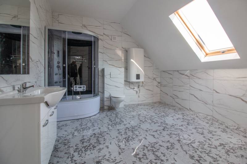 Eladásra kínálok a XVIII. kerület egyik közkedvelt, csendes részén, Erdőskerten egy 540 m²-es nyeles telken álló, teljes körűen felújított, energiatakarékos családi házat. Az eredetileg az 1990-es években épült ingatlan az elmúlt években modern külsőt és korszerű műszaki tartalmat kapott: szigetelést, napelemes rendszert, megújult burkolatokat és szanitereket, így az új tulajdonosnak valóban csak beköltöznie kell.A ház rendkívül praktikus elrendezésének köszönhetően akár nagyobb család számára is ideális választás, hiszen összesen 5 szoba és 2 nappali áll rendelkezésre, mindez dupla komforttal. A terek tágasak, világosak és otthonos hangulatot árasztanak. A fűtést energiatakarékos elektromos padlófűtés és fűtőpanelek biztosítják, a melegvizet pedig egy 100 literes villanybojler szolgáltatja, így a fenntartási költségek is jól tervezhetők.Az ingatlanhoz egy 25 m²-es, Kling elektromos kapuval ellátott garázs is tartozik, amely nemcsak az autó számára nyújt biztonságos tárolási lehetőséget, hanem akár műhelynek vagy tárolónak is használható.Ez a ház remek választás mindazoknak, akik nyugodt környezetben keresnek modern, korszerű és nagy alapterületű otthont, ahol a család minden tagja megtalálhatja a saját terét.Amennyiben felkeltettem az érdeklődését, kérem, keressen bizalommal – akár hétvégén is örömmel állok rendelkezésére!Megjegyzés: A ház külső színezés előtt áll, ezért az jelenállapotában még nem tudtam külső fotót készíteni! A fotó amit feltöltöttem a ház külsejéről az egy látványterv, tájékoztatás jellegű! |