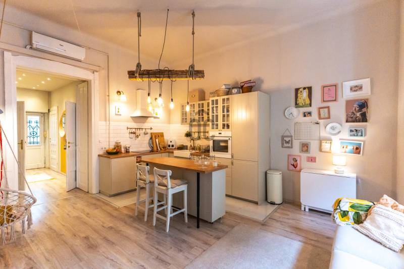 Fektessen be a jövőbe egy kivételes ingatlanba a Budapest 08. kerületének szívében, a Corvin negyedben! Ez a használt lakás nem csupán egy új otthon, hanem egy remek befektetési lehetőség is, amelynek alapterülete 77 négyzetméter. Az ingatlan kettő tágas szobával s egy amerikai konyhás nappalival rendelkezik, melyek kiválóan alkalmasak akár családi életre, akár bérbeadásra, így biztosítva Önnek a folyamatos jövedelemforrást. A lakás állapota kiváló, így azonnal költözhető, nem igényel komolyabb felújítást. A fűtés gázkonvektoros, míg a nyári hónapokban a klímaberendezés gondoskodik a kellemes hőmérsékletről. A Corvin negyed Budapest egyik legdinamikusabban fejlődő területe, ahol a modern városi élet minden előnye megtalálható. A környék ellátottsága kiváló, hiszen számos üzlet, étterem és kávézó várja az itt élőket és a látogatókat. A közeli Corvin Pláza nem csupán vásárlási lehetőségeket kínál, hanem kulturális programoknak is otthont ad, így mindig van mit csinálni a környéken. A közlekedés szempontjából is ideális helyszín, hiszen a környéken több busz- és villamosmegálló található, amelyek gyors és kényelmes kapcsolatot biztosítanak Budapest többi kerületével. Az M3-as metróvonal közelsége lehetővé teszi, hogy a város bármely pontja könnyedén elérhető legyen, így a mindennapi ingázás is egyszerűvé válik. A Corvin negyed biztonságos és csendes, ideális választás mindazok számára, akik a nyüzsgő városi élet mellett mégis szeretnének egy nyugodt otthont. Ez az ingatlan nem csupán egy lakás, hanem egy lehetőség, hogy részesedjen Budapest fejlődéséből. A befektetők számára különösen vonzó lehet, hiszen a környék folyamatosan emelkedő ingatlanárakkal büszkélkedhet, így a jövőbeni értéknövekedés biztosítja a biztonságos befektetést. Ne habozzon, hiszen egy ilyen lehetőség ritkán adódik! Amennyiben kérdései merülnének fel, vagy szeretné megtekinteni ezt a kivételes ingatlant, bizalommal kereshet minket. Szívesen állunk rendelkezésére, hogy segíthessünk a legjobb döntés meghozatalában. Az Ön elégedettsége és bizalma a legfontosabb számunkra! |