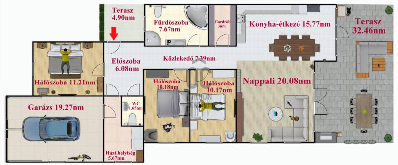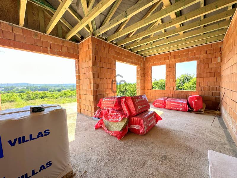 Eladó Szadán, a méltán kedvelt Aranyhegyen egy 4 szobás, 954nm-es telekkel rendelkező új építésű ikerház!Impozáns könyéken, meseszép örök panorámás és csak arra vár, hogy a tiéd lehessen.Főbb tulajdonságai:+ Egy szintes ikerház, ahol mindössze egy falon érintkezik a két lakótér, ami duplán téglázott. + Belülről szinteltolásos és nettó 99nm-es a lakótér, hozzá 32nm-es terasz és egy 19nm garázs.+ Az egész ház és válaszfalak mind 30-as téglából épültek és lesznek szigetelve. A fűtésről és hűtésről modern geotermikus fűtésrendszer gondoskodik.+ Igazán jó elosztású, mivel 3 hálószobás és egy hatalmas amerikai konyhás-nappali lett kialakítva.+ Ablakos fürdőszoba mosdóval és külön wc-vel lett tervezve, hozzá 1 db háztartási helyiség és külön gardrób.+ Mindkét lakrészhez külön bejáratú lesz és tartozik hozzá 954nm telek is.+ Jelenleg szerkezetkész állapotú, befejezés 3-5 hónap. Burkolatok, ajtók, szaniterek választhatók.+ Jogilag rendezett, tehermentes és akár CSOK és hitel is felvehető rá.+ A kivitelező leinformálható, a környéken referencia házak megtekinthetők bármikor.+ Tömegközlekedés a háztól 11 perc sétára található, ahol távolsági buszok és a Szadai Székely Bertalan úti vonat megálló található.+ Az utca épp terep rendezés alatt áll, a betonozása még idén befejeződik.Külön és egyben is eladó, ha egész családoddal költöznétek össze! További extrák beszerelése megbeszélhető, mivel a kivitelező teljes csapattal rendelkezik.Ha olyan ikerházat keresel, ami teljesen új, modern kornak megfelel és remek környéken találod, akkor ezt a házat épp neked építik! |