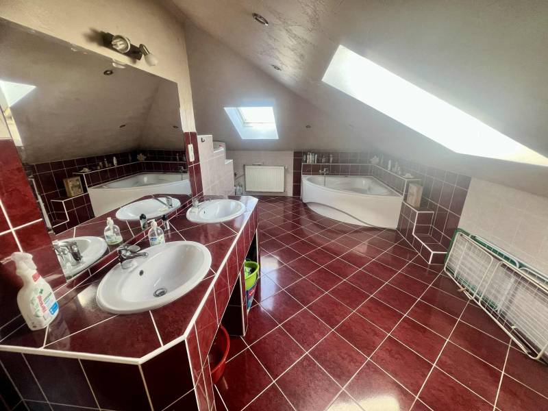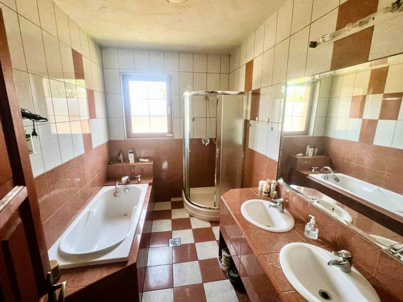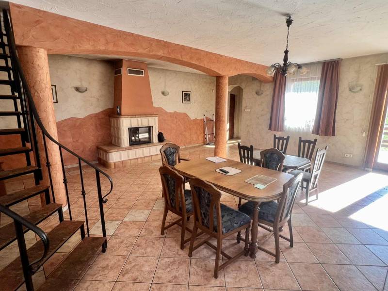 MEGVÉTELRE kínálok a XVII. kerületben Rákoscsabán családi házas övezetben, csendes utcában 882 nm-es telken egy 200 nm-es minden igényt kielégítő, kívül belül újszerű állapotban lévő, világos, TEHERMENTES, AZONNAL KÖLTÖZHETŐ, 7 szobás családi házat, nagy garázzsal és több autó számára beállási lehetőséggel. A ház 2003-ban épült masszív beton alapra, téglafalazatú, szigetelt, cserép fedéssel. A házban az otthonos életérzés és a kényelem ötvöződik. A ház körbejárható.Az alsó szinten az előszobából egy tágas 50 nm-es napfényes nappaliba érkezünk, ahonnan a nagy teraszon keresztül a parkosított kertbe juthatunk. Az előszobából jobbra található egy nagy garázs, továbbhaladva két kisszoba, fürdőszoba, ahol fürdőkád, zuhanyzó és egy külön wc található. Ezen a szinten helyezkedik el a kazánház kis mosóhelyiséggel. Balra található a konyha, a beépített konyhabútor, háztartási gépekkel együtt az ár részét képezi. A lenti szinten a padlófűtéses nappaliban még pluszban egy egyedi tervezésű kandalló gondoskodik a kellemes hőérzetről és hangulatról. Az emeletre egy fa lépcsőn keresztül jutunk egy tágas nappaliba konyhával, innét nyílik 3 szoba gardróbbal, nagy sarokkádas fürdőszoba wc-el.A fenti részt oszlopon keresztül befűti a kandalló.Az emeleten klíma biztosítja nyári melegben a kellemes hőmérsékletet.Az otthon biztonságáról egy több ponton záródó biztonsági bejárati ajtó gondoskodik. A fa nyílászáró termő üveggel ellátott.A nappali, konyhák és a fürdőszobák járólappal, a szobák laminált parkettával burkoltak.A szépen rendben tartott telek termő gyümölcsfákkal, /alma, körte, cseresznye, szilva/ beültetve, melynek locsolásáról ásott kút gondoskodik. A ház alatt egy 18 nm-es ablakos pince található, a bejáratnál száraz angol ablakos megoldással. A környék közlekedése és infrastruktúrája kitűnő Csendes, biztonságos, kertvárosi. A közelben található: óvoda, iskola, Pizzéria, játszótér, valamint pár perc sétával elérhető a 161, 161E, 162, 262 buszok megállója.Szívből ajánlom ezt a jó elhelyezkedésű, jó elrendezésű ingatlant minden korosztálynak, de főleg családoknak, összeköltözőknek, akik a kerület csendes részén keresik új otthonukat. Hívjon bizalommal, nézze meg személyesen! Amennyiben az ingatlan megvásárlásához el kell adnia meglévő ingatlanját, ebben is állunk szíves rendelkezésére. |