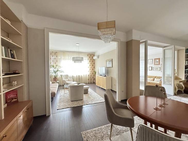 A belváros szívében, a Galamb utcában, 6. emeleti elhelyezkedéssel kínálunk bérbeadásra egy 115 m²-es, 3 szobás, teraszos lakást.A lakás világos, tágas terekkel, ízlésesen berendezett belsővel és lenyűgöző panorámás kilátással rendelkezik.Egy fürdőszoba található benne, melyhez külön WC tartozik, valamint az egyik hálószobában egy beépített zuhanykabin biztosít extra kényelmet.A kellemes hőmérsékletről a központi fűtés,és légkondicionáló gondoskodik.A ház lifttel felszerelt, a környék kiváló közlekedésű: néhány perc sétára találhatók a 4-6-os villamos, az M3-as metró, valamint több busz- és trolijárat megállói. A belváros főbb pontjai gyalogosan is könnyen elérhetők.Bérleti díj: 2 500 EUR / hóKözös költség: 141 EUR / hóA lakás azonnal költözhető, ideális választás pároknak, akik a belvárosi életstílust, a kényelmet és a stílusos életteret keresik. |