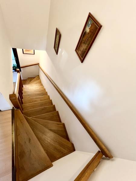 170 m2-es, 4 szintes ikerházfél keresi új tulajdonosát Budapest XI. kerületében, Kelenvölgyben, ahol a kertváros nyugalma találkozik a főváros kényelmével.KÖRNYÉK ÉS KÖZLEKEDÉS:- Budapest XI. kerület, Kelenvölgy.- Csendes, családi házas, nyugodt környék jó infrastruktúrával.- A mindennapi élethez szükséges szolgáltatások elérhetők a közelben.- Sétatávolságra van iskola, óvoda, élelmiszerbolt, patika, cukrászda és étterem is.- Tömegközlekedésként az 58-as és a 153 buszmegálló 5 percen belül elérhető, a 150-es és a 250-es busz 10 perc távolságra található.- Az M4 metró 15 perc busszal.- Az M1-es és az M7-es autópálya 10 perc alatt megközelíthető.A HÁZRÓL:- 1986-ban, POROTHERM téglából épült, 4 szintes, 10 cm-es Terranovával szigetelt ikerház.- 161.5 m2-es lakótérrel, 17 m2-es terasszal, közel 180 m2-es kerttel és autóbeállóval rendelkező otthon.- Homlokzata jó állapotú, belülről megóvott, átlagos állapotú lakás.- Az ingatlanban eredeti fa nyílászárók vannak, világos terekkel rendelkezik.- Terasza és kertje a nappalihoz kapcsolódik, amely a domborzati viszonyok miatt egy szinttel feljebb van, mint az utcafront felőli bejárat.- A nappali tájolása keleti, belmagassága 260 cm.- A melegvizet és a fűtést gázkazán szolgáltatja, a nappaliban és a hálószobákban padlófűtés van kiépítve. - A tetőtéri lakrészben a hűtésről klíma gondoskodik.- Falai igény esetén mozgathatók, a lakótér átalakítása megoldható.A LAKÁS FELOSZTÁSA:ALSÓ SZINT (utca felől):- Autóbeálló egy gépkocsi részére.- Előszoba, iroda, kamra, műhely, tároló szoba, gépészet.- A jelenleg irodának használt helyiség ablaka biztonsági üveggel rendelkezik.ELSŐ EMELET:- Nappali, konyha, fürdőszoba, wc, terasz, kert.- A kertben tárolásra alkalmas kis faház található.- A konyhát, a fürdőszobát, a közlekedőt és a nappalit járólappal burkolták.MÁSODIK EMELET:- Közlekedő, három hálószoba, fürdőszoba-wc.- A szobák előterében beépített nagy méretű szekrény található.- A fürdőszobában zuhanyzó kapott helyet.BEÉPÍTETT TETŐTÉR: - Belmagassága a legmagasabb ponton 175 cm.- Egy légterű, tetőablakkal bevilágított, klímával ellátott 22 m2-es élettér.- Fürdőszobájában zuhanyzó és WC található.- A tetősíkot kihasználva, a fürdőszoba mellett mindkét oldalon szekrényt alakítottak ki.AZ INGATLAN MEGTEKINTHETŐ:- személyesen,- online személyes bejelentkezéssel.FINANSZÍROZÁSBAN – ONLINE IS – SEGÍTÜNK!- Bank-független hitelcenterünk díjmentesen versenyezteti az összes bank és hitelintézet ajánlatát.- Önnek csak annyi a dolga, hogy egyeztet munkatársunkkal, majd kiválasztja a hosszú távon is legkedvezőbb konstrukciót.- Szakértőink 20 év tapasztalattal, fogyasztóbarát lakáshitelekkel, babaváró hitellel és teljes körű CSOK Plusz és OTTHON START program ügyintézéssel várják.- Időpont-egyeztetéssel munkaidő után is elérhetők.Érdeklődés esetén kérem keressen bizalommal! Kérdéseire szívesen válaszolok. |