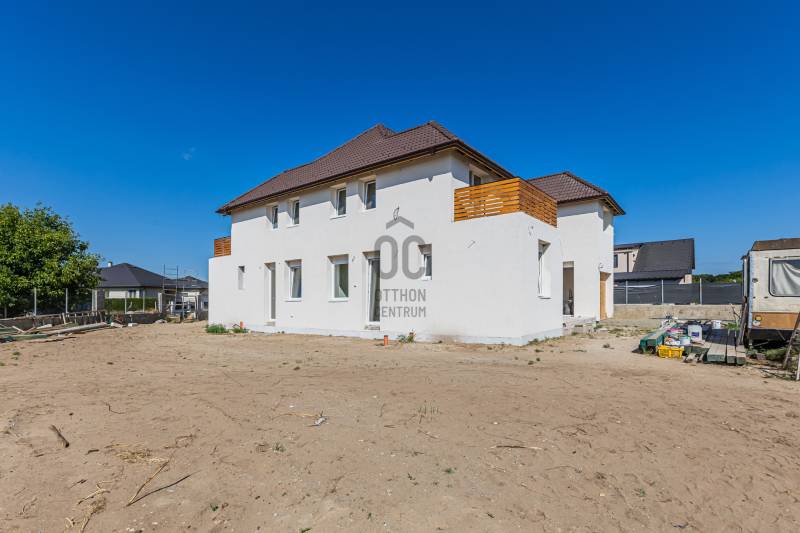 KIEMELT AJÁNLAT!Kiváló referenciákkal!A fényképeken korábban értékesített referenciák láthatók. A látványtervek és a telekről készült képek mutatják a jelenlegi ingatlant.ÚJONNAN ÉPÜLŐ LAKÓPARKBAN, a Waldorf iskolától 2 utcára épül ez az ÚJÉPÍTÉSŰ IKERHÁZ.Egymással mindössze egy tárolónál érintkezve, teljesen SZEPARÁLT KERTRÉSZEKKEL.A helyiek által kedvelt CSENDES, ZÖLD UTCÁBAN, KITŰNŐ MINŐSÉGBEN készül, 460 m2 saját telken.Itt biztosan megtalálja a nyugalmat, aki arra vágyik.Ezen a területen nincsenek és nem is lesznek látható kábelek, ez egy rendezett, újonnan épülő lakópark.Az épület 40cm vastag fallal épül, műanyag nyílászárókkal 3 rétegű hőszigetelt üvegezéssel, Terrán Zenit Resistor Onix tetőcserép fedéssel, hőszivattyú kiállással, padlófűtéssel, napelem-, riasztó-, és klímaelőkészítéssel, illetve egy klíma egységgel a nappaliban.A hálószobákba laminált padló, a többi helyiségbe járólap kerül, de ez most még igény szerint módosítható.A FŰTÉSE és a FENNTARTÁSA KEDVEZŐ, a korábbi referenciákkal kapcsolatos tapasztalatok alapján a TELJES HAVI REZSI legfeljebb 40-45 ezer forint, és napelemmel REZSIMENTES tud lenni az ingatlan.Napelem beszerzését és kedvezményes beszerelését az ár megbeszélés alapján tartalmazhatja.Fúrt kút is található a telken, bemért, iható vízzel.Csatorna kiépítése után az utca és a környék is aszfaltozva lesz.Az építés jelenleg is zajlik, ezért a BURKOLATOKAT Ön még KIVÁLASZTHATJA, igényeit megadhatja, így a lehető legjobb időben van.Az egyik fél már elkelt, a másik még elérhető.Nettó 99 m2 lakótér, nappali+2 szoba, 2 fürdőszoba és garázs.Igény szerint a garázs még kérhető szobaként, akkor nappali+3 hálószobás lesz az ingatlan, ebben az esetben egy fedett, viacolorozott autóbeállót is tartalmaz az ár.10 percen belül szinte minden elérhető: busz, ovi, suli, boltok posta, cukrászda, virágos, gyógyszertár, benzinkút, stb.ÁTADÁS 2026. május 31-ig, igény szerint hamarabb.Minimum 10 % foglalóval és 20% önerővel LEKÖTHETŐ.CSOK, Hitel, Babaváró és illeték visszatérítés igényelhető rá.Nagyon jó választás mind az ingatlan, mind a lokáció.Hívjon bizalommal a hét bármely napján!Amennyiben saját ingatlanja eladásához a mi irodánkat választja, ezt minőségi szolgáltatások és kedvező feltételek mellett vállaljuk.Az ingatlan CSOK igénybevétele esetén illetékmentes!CSOK, Babaváró, Lakásfelújtás, Támogatott hitelek? Irodánk minden állami támogatás és lakáshitel igény kapcsán DÍJMENTES és SZAKÉRTŐ segítséget nyújt!Igény szerint profi ügyvédi hátteret is biztosítunk. |