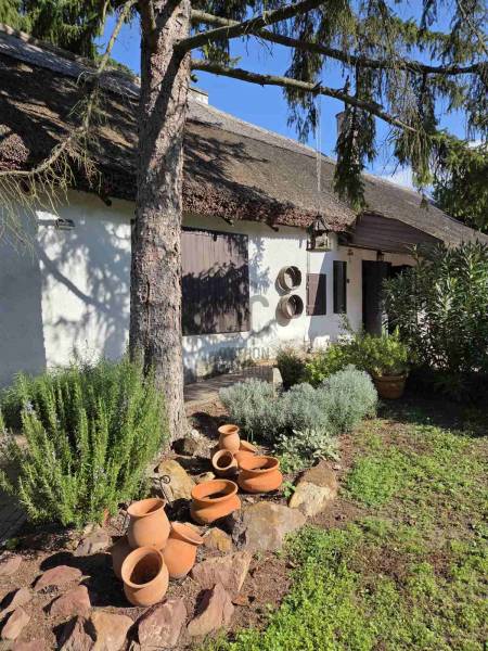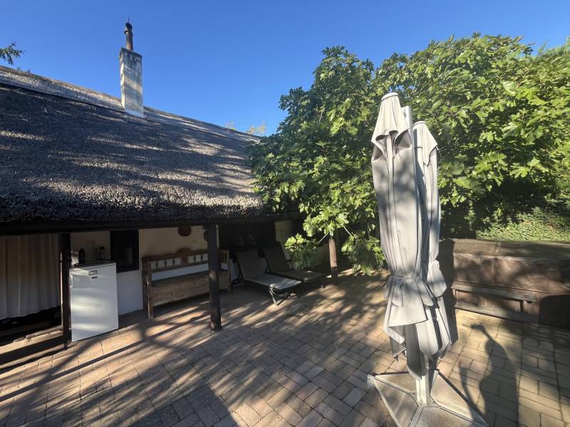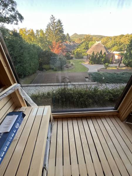 Badacsonytomaj-Badacsonyörs belterületi részén vált eladóvá ez az autentikus jegyekkel bíró, lakóházként bejegyzett ingatlan plusz telekkel, mely valamikor az 1950-es években épült és a folyamatos karbantartásnak valamint felújításoknak köszönhetően megőrizte eredeti jellegét és hangulatát is!A 3323 nm-es telek közművesített, víz, villany és csatorna is bevezetésre került, gáz az utcában található.A ház fűtéséről és hűtéséről hőszivattyús rendszer gondoskodik, a fűtést egy fatüzelésű kis kályha is kiegészíti.A ház hasznos alapterülete 65 négyzetméter, elosztását tekintve egy konyha-étkező, folyosó, 3 szoba, fürdőszoba - wc, valamint háztartási helyiség került kialakításra az épületben.A kert hátsó részében található egy hangulatos kerti tó, amit egy vörös levelű japán juharfa tesz teljessé. A telek végében egy 40 négyzetméteres alapterülettel rendelkező szaunaház került kialakításra, benne 8 személyes finn szauna, 9 kw-os kályhával, a falon egy parajdi sóképpel, zuhannyal, külső pihenővel, ahonnan a kilátás a Badacsonyra néz.A telek részén, egy modern, 30 négyzetméteres hűthető-fűthető mobilház található rajta, amely kis nyaralónak is tökéletes választás, emellett pedig helyet kapott még egy 6 személyes lakókocsi és egy régebbi, tárolóként funkcionáló, tégla épület is a telken belül, valamint egy fedett kiülő/ terasz.A kert szemet gyönyörködtető, az épület előtt kiépített teraszon helyett kapott egy jakuzzi, társalgásra alkalmas kiülő rész és sütögető helyiség.Elhelyezkedéséből adódóan a telek egésze tájpanorámás a környező tanúhegyekre. Ajánlom az ingatlant mindazok figyelmébe, akik a mindennapi nyüzsgésből kiszakadva a megérdemelt pihenést nyugodt környezetben szeretnék eltölteni távol a város zajától!Kérdés esetén, keressen bizalommal az elérhetőségek egyikén. |