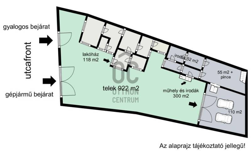 CSALÁDI HÁZ - IKERHÁZ - TÁRSASHÁZ - VÁLLALKOZÁSI TELEPHELYEladó egy különleges adottságú, több mint 400 m² összterületű ingatlan Soroksár egyik csendes, rendezett utcájában, megbízható szomszédságban.A tágas, értékes telek és a felújítandó épületek páratlan lehetőséget kínálnak befektetőknek, vállalkozóknak vagy építkezőknek, akik saját elképzelésük szerint szeretnék megvalósítani álmaikat.Ingatlan főbb jellemzői:Teljesen felújítandó főépület – szabadon alakítható kialakításJelenleg két különálló téglaépület:- 118 m2 lakóépület~300 m² autószerelő műhely (két szerelőaknával), irodák, raktárak +100 m² pinceMegnevezés: kivett lakóház, udvarMéret: 922 m²Besorolás: Lk-1-XXIII-2/2Közművek: telken belül - villany (3x16A és 3x20A) és gáz bekötve, csatorna a telkenBeépíthetőségi paraméterek:Beépítési mód: szabadonálló Max. beépíthetőség: 50%Építménymagasság: 7,5 mSzintterületi mutató: 1,5 m²/m²Zöldfelület minimum: 40%Terepszint alatti beépítés: max. 50%Kialakítható legkisebb telek: 500 m²Építhető:- családi ház- ikerház- társasház- üzlethelyiség - bemutatóterem- kereskedelmi egység- telephelyTökéletes választás azok számára, akik értéket és lehetőséget keresnek egy helyen!Amennyiben felkeltette érdeklődését, keressen bizalommal! |