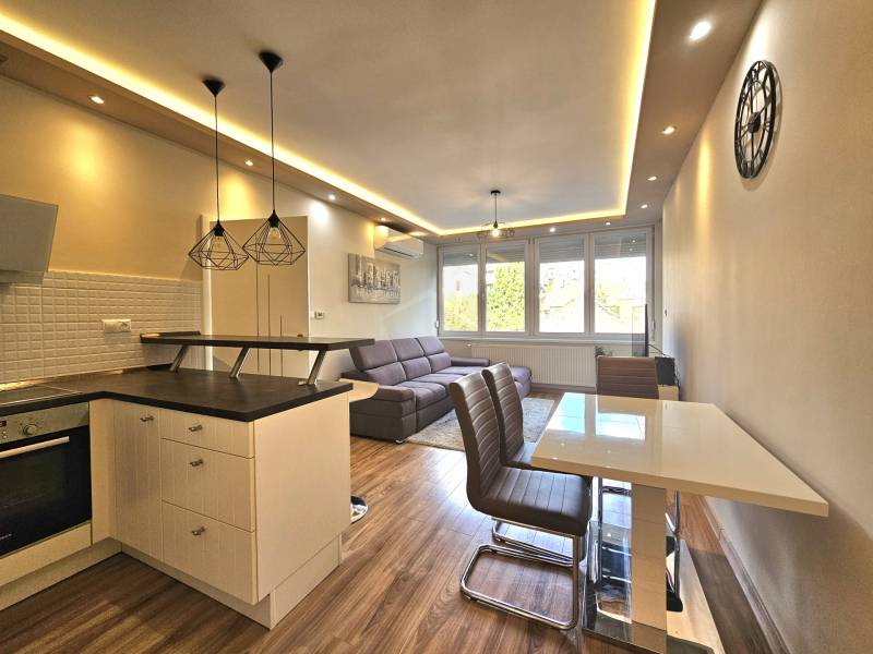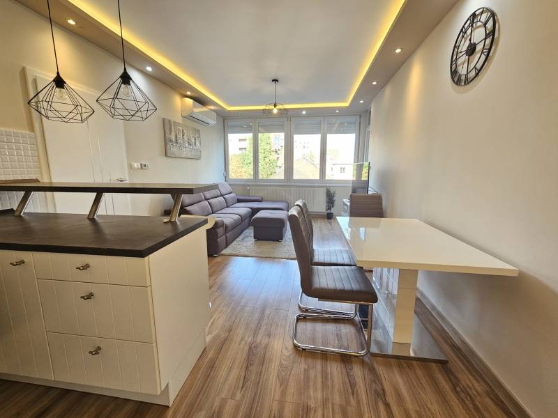 A lakás egy csendes társasház 2. emeletén található, az épületben van LIFT!Nagy előnye, hogy az amerikai konyhás étkezős nappaliból külön nyílik még 2 hálószoba, valamint egy keleti fekvésű erkély, mely belső parkra néz. A szobában minőségi franciaágy matraccal gondoskodik a pihentető alvásról.A lakás igényesen felújított jól átgondolt terekkel rendelkezik. A fürdőszoba és a wc is külön helyiségekben található. A fürdőszoba két irányból is megközelíthető. A lakás bútorozott és gépesített, a konyha modern gépekkel, a szobák kényelmes gardróbszekrényekkel lettek ellátva, így a beköltözéshez már csak a személyes dolgainkat kell hozni.A lakás a jó közlekedésének köszönhetően kiváló lokációval bír és ehhez társul még a belvárosi történelmi hangulat, melyet minden nap átélhetünk. Közelben megtalálható: bevásárlóközpontok, piac, parkok, oktatási intézmények, éttermek, gyakorlatilag minden, amire szükségünk lehet.A lakás rezsije nagyon kedvező!A lakásban a dohányzás nem megengedett és házikedvencet sem lehet hozni. Szerződéskötéskor 2 havi kaució és az adott havi bérleti díj megfizetése szükséges, valamint közjegyzői kiköltözési nyilatkozat tétele. |