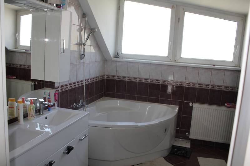 Budapest XV. kerületében, nyugodt, kertvárosi környezetben, eladó egy kétszintes, napfényes családi ház, 350 m²-es telken.Az ingatlan jellemzői:- Építés éve: 2005, 30-as Porotherm tégla, 5 cm hőszigeteléssel.- Földszint: amerikai konyhás nappali, étkező, előszoba, külön mellékhelyiség.- Emelet: három hálószoba, fürdőszoba káddal és zuhanyzóval, gardrób, mosókonyha.- Franciaerkély az egyik hálószobán.- Padlástér tárolásra.- Fedett terasz és gondozott kert, kemence és faház.- Fűtés: cirkó kazán, melegvíz: 150 literes víztároló.- Légkondicionáló a felső szinten.- Felújítások az elmúlt években: víztároló-, járólap-, laminált padlócsere, részleges fürdőszoba-felújítás.Környék és infrastruktúra:- Csendes, családbarát környezet.- Rövid sétára: bölcsőde, óvoda, iskola, gyógyszertár, állatorvosi rendelő.- Tömegközlekedés gyors eléréssel a belváros irányába.Ez az ingatlan ideális választás családoknak, akik nyugodt kertvárosi életet keresnek, de szeretnének jó infrastruktúrához és szolgáltatásokhoz közel maradni.- Hamarosan új profi képek! - |
