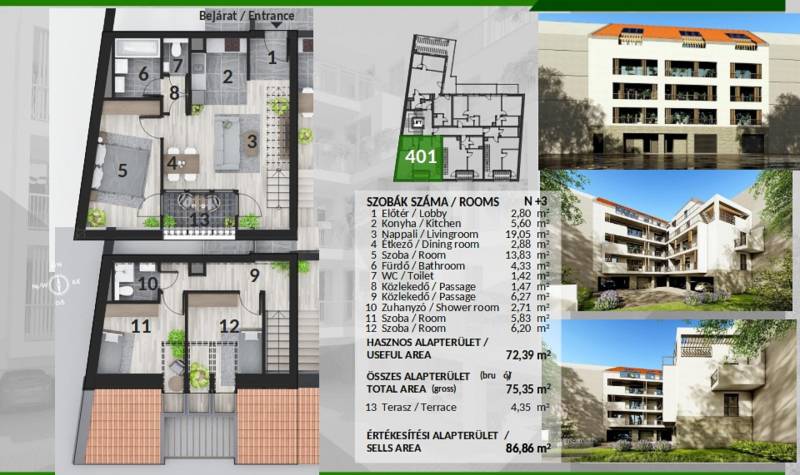Az új lakásod keresése izgalmas kaland, és most egy olyan lehetőséget kínálunk, amely tökéletesen megfelel az első lakásvásárlók igényeinek. Budapest 04. kerületében, a felkapott Újpest központban található , új építésű lakóingatlan, amely minden elképzelésedet felülmúlja. Az ingatlan alapterülete 84nm, amely négy tágas szobát rejt ,a belső 2 szinten elosztva, így bőséges teret biztosít a mindennapi élethez. Az alsó, és felső szinten is található fürdőszoba egyedi tervezésű, és a világos amerikai konyhás nappali tökéletes helyszín a családi összejövetelekhez vagy baráti találkozókhoz.Az ingatlanhoz tartozik egy 5 nm-es erkély, ahol élvezheted a friss levegőt és a csendes környék nyugalmát. A lakás prémium kivitelezésű, és a legmodernebb technológiával készült, beleértve a motoros redőnyöket és az elektromos autó töltési lehetőséget, ami különösen vonzó a környezettudatos vásárlóknak. A házközponti fűtés egyedi mérésének köszönhetően pedig mindig a legjobb komfortérzetet élvezheted.A környék ellátottsága kiváló, hiszen a közelben található boltok, éttermek és szolgáltatások mind hozzájárulnak a kényelmes mindennapokhoz.Ne habozz, bizalommal állunk rendelkezésedre, hogy segítsünk megtalálni álmaid otthonát! |