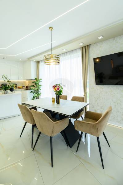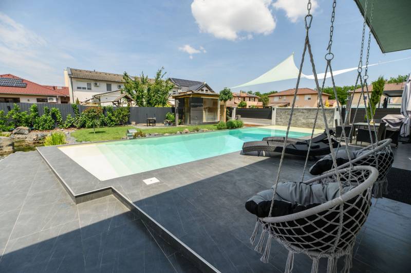 Varázslatos Otthon Dunaharaszti Szívében: Ahol Az Álmok Valóra VálnakKépzelje el… egy hely, ahol minden reggel a felkelő nap simogató sugarai ébresztik, és ahol a napnyugta aranyló fényében zárhatja a napot. Ez az álomotthon nem csupán egy ház, hanem egy életérzés, egy menedék, ami Dunaharaszti egyik legkedveltebb újépítésű lakóparkjában várja Önt.Elegancia és Kényelem Minden SarkonEz a 137 nm-es családi ház a minőség és az elegancia megtestesítője. Már a belépés pillanatában érezni fogja azt a meleg, otthonos hangulatot, amit a gondosan megtervezett terek és a számos okos otthon funkció nyújt. A tágas nappali tökéletes helyszín a családi összejöveteleknek és a meghitt pillanatoknak, míg a három hálószoba mindenkinek elegendő privát szférát biztosít. Egy külön gardrób segít rendben tartani a ruhákat, a praktikus háztartási helyiség pedig megkönnyíti a mindennapokat. A két fürdőszoba és külön WC pedig a kényelmet szolgálja.Trópusi Oázis a Saját KertjébenA házhoz tartozó óriási terasz maga a paradicsom, ahol a reggeli kávétól az esti borozásig élvezheti a szabad levegőt és a napsugarakat. A forró nyári napokon a medence nyújt felfrissülést, de az igazi különlegesség a több mint 100 díszhallal teli kerti tó. Tükörtiszta vizével és színes élővilágával azonnali kikapcsolódást nyújt, igazi harmóniát teremtve a kertben.A Modern Technológia SzolgálatábanA jövő otthona ez, modern hőszivattyús fűtéssel ellátva, ami nemcsak környezetbarát, de rendkívül gazdaságos is. A hangulatvilágítás és a ledek sokasága pedig gondoskodik az igazi otthoni atmoszféráról, esténként egyedi fényjátékkal öltöztetve a tereket.Ne habozzon, jöjjön el és tekintse meg ezt a kivételes otthont! Garantáljuk, hogy nem fog csalódni, ha egy egyedi, modern és meleg hangulatú házra vágyik, mindössze karnyújtásnyira a nyüzsgő fővárosi élettől.Készen áll arra, hogy megtalálja álmai otthonát? |