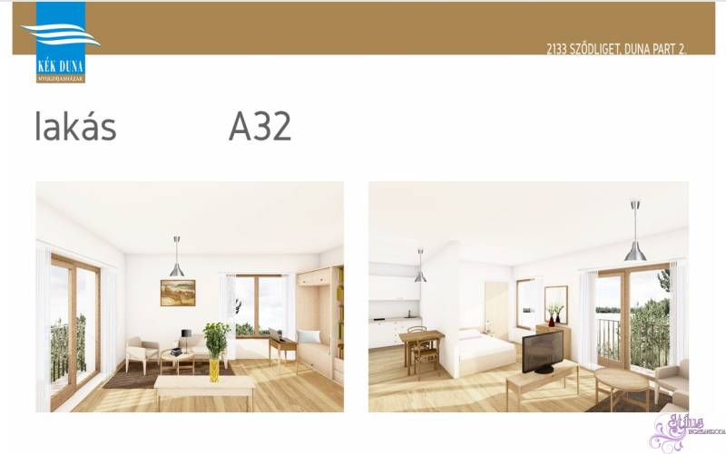 „Nyugdíjasház - Egy biztonságos jövőért”Sződliget Duna-partján épülő lakóparkba vitalitással teli, pozitív gondolkodású fiatal nyugdíjasokat várnak. A Kék Duna Nyugdíjasházak egy olyan prémium lakópark lesz, ahol a lakhatáson túl, a nyugdíjas életvitelhez szükséges szolgáltatásokat is meg lehet kapni helyben, a Kék Duna Otthonból.Az itt lakók életmódja annyiban különbözik majd egy máshol élő ember életmódjától, hogy:•egyszerűen és gyorsan juthatnak orvosi, ápolási és műszaki segítséghez, ha szükségét érzik•biztonsági szolgálattal védett, bekerített területen élhetnek, ahová csak olyan ember léphet be, akit a portaszolgálat beazonosított,•ezen a védett területen sok mindent el tudnak intézni anélkül, hogy el kellene hagyniuk itteni környezetüket,•különlegesen szép természeti környezetben, a Dunakanyarban, dunai panorámával, egy támogató közösségben élhetnekAz akadálymentesített, liftes, 20 lakásos (szintenként 4 lakás) társasházban 5 lakószint és egy pinceszint (tárolókkal) kerül kialakításra.A házak szerkezete monolit vasbeton födémekkel és vasbeton pillérrel készülnek. A külső falak 30 cm-es (erre kerül 20 cm szigetelés), a belső válaszfalak 10 cm-es porotherm téglából épülnek.A fűtést és a hűtést napelemmel támogatott levegő-víz hőszivattyú végzi padlófűtéssel, illetve falra szerelt (fan-coil) hőleadóval. A Nyugdíjasházak úgy épülnek, hogy a rezsi költség alacsonyan tartható legyen.A házak tájolásakor különösen ügyeltek arra, hogy a dunai panoráma minden lakásból a lehető legjobban érvényesüljön.A hirdetésben feltüntetett lakás (A32) a 3. emeleten található, Észak-Keleti fekvésű 36,6 nm alapterületű, melyhez francia erkély tartozik Az ingatlanban amerikai konyhás nappali, háló és fürdőszoba kerül kialakításra. Igény szerint a háló leválasztható.További lakástípusok a kínálatomban megtalálhatóak. Árak fekvéstől és elhelyezkedéstől függően: 54,5- 68,9 MFT-ig.A földszinti lakások kertkapcsolatosak, az emeleti ingatlanokból csodaszép panoráma élvezhető!Minden lakáshoz beépített, gépesített (2-es főzőlap, mikrohullámú sütő, páraelszívó és hűtőszekrény) konyhabútor, saját használatú (5,4-5,6 nm-es) tároló és igény szerint felszíni kocsibeálló is tartozik, melyeket a vételár tartalmaz.A kivitelezés ebben az évben elindul. A lakások átadása 2026. IV. negyedévére várható, de már most leköthetőek!A Nyugdíjasházak munkatársai rendszeresen szerveznek majd csoportos programokat, pl. kirándulást, színházlátogatást, házi-mozit, családi napokat, szüreti napot és karácsonyi programokat.A társasház tömegközlekedéssel is jól megközelíthető. A Budapest-Vác busz megállója 300 méterre, a Sződligeti vasútállomás 1,5 km-re található.A Kék Duna Nyugdíjasház célja, hogy az az itt élőknek lehetővé tegye, hogy biztonságban, tartalmasan, segítő, pozitív közösségben töltsék nyugdíjas éveiket. Ez az életforma teljes szabadságot jelent majd az itt lakóknak. Ha viszont egészségi állapotuk miatt segítségre szorulnak, az sem jelent majd gondot, minden segítséget elérhetnek házon belül.Szívből ajánlom, ha Ön is vágyik egy ilyen környezetre és egy biztonságos idős korra! |