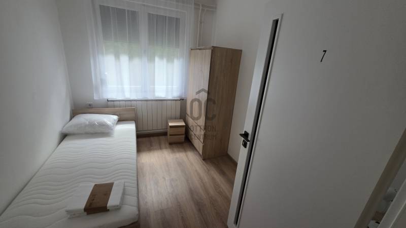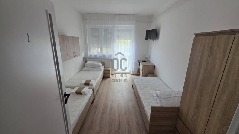 Debrecenben, hosszú távra kiadó egy két épületből álló, teljes körűen felújított családi ház.A két kétszintes épületben 11 , többségében kétágyas szoba található. Szintenként konyha, étkezőés fürdőszoba van kialakítva, tehát 4 konyha, 4 fürdőszoba található az ingatlanban.Így a szintek külön-külön is használhatók, vagyis 4 család önálló lakhatása is biztosítható.Az ingatlan berendezett, gépesített, minden használati tárggyal felszerelt, beköltözhető.A minimális bérlési idő 1 év.Három havi kaució szükséges. |