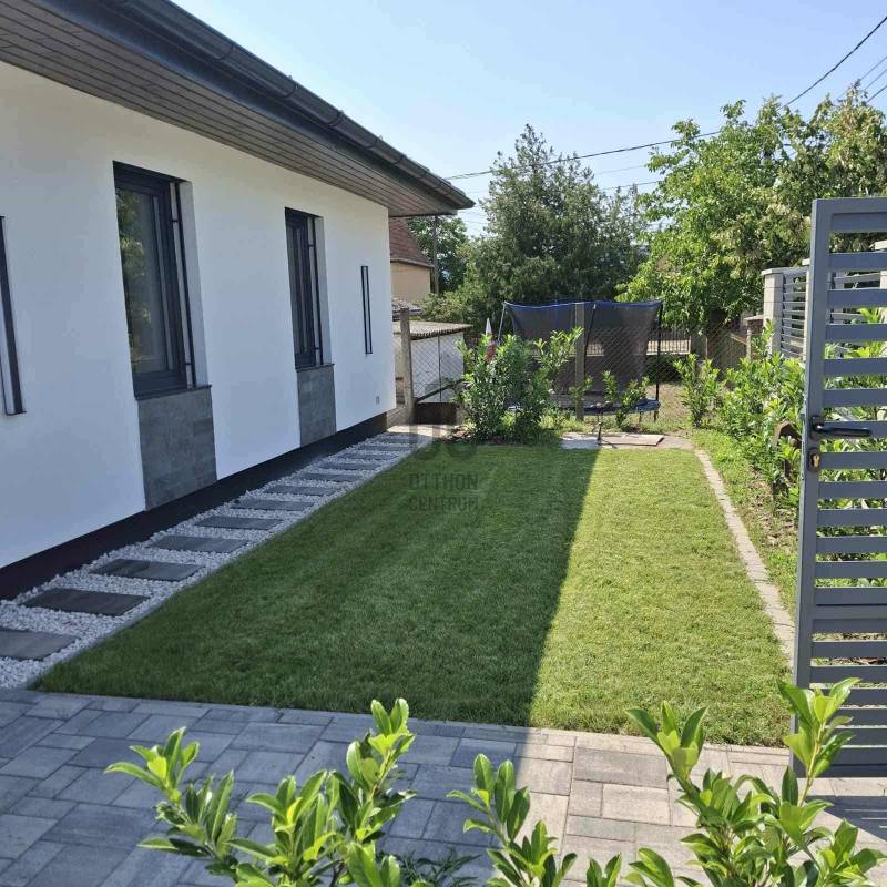 Sződliget az északi agglomeráció egyik legkedveltebb települése, egy tüneményes kertváros Budapesttől mindössze 25perces autóútra Dunakeszi és Vác között. Lakói és városvezetése igyekezett megőrizni falusias báját, így az ide látogatók szellős utcákat, egészséges méretű kerteket, virágok ölelte köztereket találnak, nyoma sincs zsúfoltságnak, egymást érő lakóparkoknak. Gyönyörű Duna-partja és remek közlekedési lehetőségei miatt az elmúlt évek egyik dobogós választásává tették a kiköltöző családok.Itt, a város egyik autentikus utcájában, kiviteleződött egy nem csak megjelenésében, hanem funkciójában is TÖKÉLETES OTTHON.Unalmas, és közhelyes ezt írni, ugye? Főleg, ha újépítésű házról olvasunk...- De mi van, ha a klisé életre kel?Lássuk, milyen a tökéletes Otthon?!-KORSZERŰ, FENNTARTHATÓ: hőszivattyús fűtés-hűtés (padlófűtés+mennyezet) napelemrendszer, elektromos autó töltő (11kW), 3rétegű thermoüveges nyílászárók, elektromos zsalúziarendszerrel, homlokzati és födém hőszigetelés, kertben automata öntözőrendszer, elektromos kapu, beépített konyhai gépészet valamint világítástechnika A++, ahogy a ház energetikája is!- EGYSZINTES: minden korosztálynak megfelelő, hosszútávra tervezhető, nem kell megszabadulni tőle ha kirepülnek a gyerekek-LETISZTULT: az antracit-fehér homlokzati színkombináció élét otthonossá lágyítja a sátortető, a garázs körüli kőburkolat diszkréten olvad a térbe és alkot harmóniát, semmi cicoma, nincs feltűnés csak modern, időtálló, klasszikus megjelenés. A belső terekből üvölt az elegancia, a magafényű fehér, szigettel ellátott konyha diszkrét szerelékekkel, skandináv stílusú térben megtört kialakítással, rejtett kamrával, rengeteg tárolóhellyel, a fürdőszobák burkolatválasztása, a nyílászárók minősége mind prémium, mégsem harsog, hanem szolgál, - hazatérni hív!-FUNKCIONALITÁS: minden élettér ÉLETRE VAN SZABVA, nincsenek 8m2-es szobák, a garázsban valóban elfér egy autó akkor is ha salgópolcrendszer kerül be a családi SUP flotta mellé. Kamrának nem egy lépcső alatti holtteret ad a kivitelező, hanem ablakos, kihasználható helyiséget, ahova fagyasztóláda, mosókonyha, de méretéből adódóan home office is kerülhet :) Az elrendezés OKOS, a hálószobák egymástól szeparáltan kerültek kialakításra, a szülői lakrész gardróbszobával és privát fürdőszobával rendelkezik, a közlekedőfolyosón vendég illemhely került kialakításra. A garázs előtt és mellett viacolor, a ház előtti utcafront kultúrált, a kerítés gondozásmentes Semmelrock-EXTRÁK: Katalógusba illő konyhaszigetes konyhabútor teljes gépesítéssel (Whirlpool), funkcionális és design fényelosztók, olasz kerámiák, fatokos beltéri ajtók, fürdőszobák PLAFONIG BURKOLVA, RAVAK szaniterek, szegélyezés végigfut, KANDALLÓ KIALAKÍTÁSI LEHETŐSÉG,zsalúziarendszer elektromos, központi világításkapcsolók, elektromos kerti és garázskapu, 11kW autótöltő, beállók viacoloros kialakítása, kertben automata öntözés, telepített babérmeggy sövényJöjjön el, tekintse meg, ha elege van a silány módon kivitelezett low budget házakból, ahol még milliókat kalkulálhat arra, hogy új otthona élhető legyen a hétköznapokban, ha EGYSZERŰEN EXTRA Otthonra vágyik, mely a szemnek gyönyörű a családot pedig maximálisan kiszolgálja! |