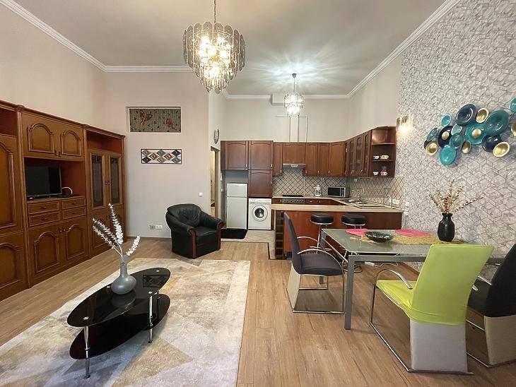 Kiadó igényesen felújított, bútorozott lakás a belváros szívében – Király utca 67. (VII. kerület)Budapest egyik legkedveltebb részén, a VII. kerületben, a Király utcában kínálunk hosszú távra kiadásra egy 76 m²-es, 2,5 szobás, világos és otthonos lakást.A lakás elosztása ideális:nagy méretű hálószoba,tágas amerikai konyhás nappali,egy külön kis dolgozószoba vagy gardrób.valamint egy erkély,ahova szép időben remek kiülni egy kávéra vagy egy pohár borra.A lakás frissen festett, új tapétával, bútorozott, légkondicionált,teljesen gépesített és felszerelt – csak a személyes holmijait kell hoznia!Bérleti díj: 280.000 Ft/hóRezsi: 22.800 Ft/hó + fogyasztás alapjánInternet és TV: 12.000 Ft/hóJanuártól költözhető 2 havi kaució + tárgyhavi bérleti díj + közjegyzői okirat költségének fele ellenében. Kisállat nem hozható, dohányzás nem megengedett!A környékről:A Király utca Budapest egyik legpezsgőbb utcája, tele kávézókkal, éttermekkel, bárokkal, boltokkal – mégis a lakás csendes, így egyszerre élvezheti a belvárosi élet előnyeit és a nyugalmat.A Liszt Ferenc tér, Gozsdu udvar, Andrássy út és a Deák tér pár perces sétával elérhető. A környék kulturális és gasztronómiai kínálata rendkívül gazdag.Kiváló közlekedési kapcsolatok:M1, M2, M3 metróvonalak pár percre (Deák Ferenc tér)4-6-os villamos, buszok, trolik a közelbenÉjszakai járatok elérhetők, így autó nélkül is könnyedén közlekedhet a városban |