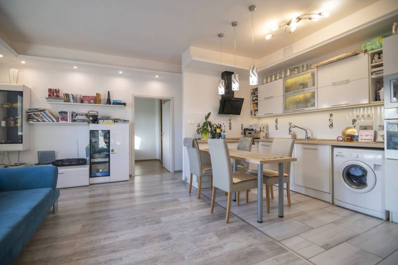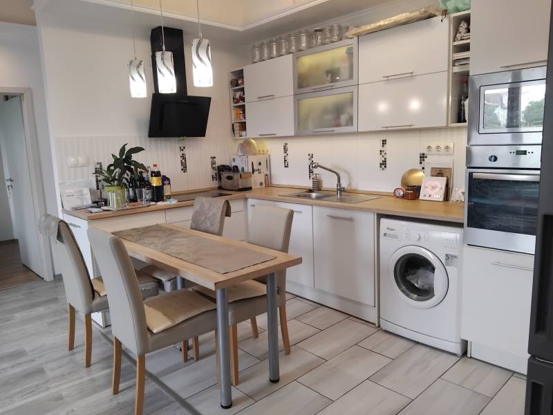 A lakásról:* beépített szekrények*klíma*megegyezés szerint bútorokkal*a fő hálószoba saját fürdőszobával*Daikin klíma*páraelszívó*gépesített konyha*korszerű, műanyag nyílászárók és elektromos redőnyök*bejárati ajtón biztonsági rács*dupla fűtési lehetőség, kondenzációs kazán és elektromos cirkó *saját vízóra 2 db*lépcsőházi kamerarendszer*gondnoki és takarító szolgálat*parkosított kert*jó szomszédok és közös képviselet*ház előtt parkolóövezet*tetőtér beépítési lehetőség kérhető, mert legfelső emeleten van a lakás.*kiváló a közlekedés és a közelben minden megtalálható, ami szükséges a hétköznapi élet kényelméhez és a kikapcsolódáshoz. |
