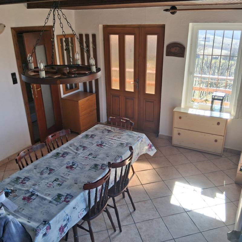 Eladó egy panorámás ház Óbudaváron, a Balaton-felvidékenEladó egy hangulatos, háromszintes családi ház Óbudavár zártkerti részén, gyönyörű kilátással a Balatonra és a Nivegy-völgyre. A 3079 m²-es, gondozott telken szőlő és számos gyümölcsfa található.A ház három szintes, 6×6 méteres alapterületű.- A szuterénben a tágas, jól felszerelt pince mellett egy borelőkészítő helyiség kapott helyett vizesblokkal, ami étkezőként is szolgálhat. (WC-vel, kézmosóval),- A középső szinten egy tágas fogadótér vár minket étkezővel, konyhával, kamrával és egy fürdőszobával. A bejárattal szemben egy jól működő, néhány éves kandalló tereli magára a figyelmet.- A felső szinten egy otthonos, napfényes, tágas nappaliból nyílik az erkély, ahonnan csodálatos kilátás tárul elénk. Itt még két félszoba kapott helyett.Az épület aszfaltos úton könnyen megközelíthető, a közvilágítás jó. A ház vízzel és villannyal ellátott, emésztővel rendelkezik. A kényelmet és a meleget egy hangulatos kandalló biztosítja, a melegvizet villanybojler adja.Az ingatlan tökéletes választás lehet nyaralónak, de egész éves ott lakásra is kiválóan alkalmas.Irányár: 95 000 000 Ft |