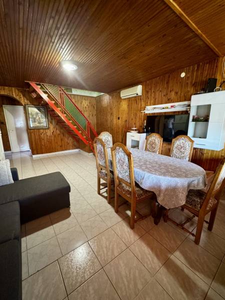 Lőrinciben, a Bercsényi utcában eladásra kínálok egy 140 m²-es, 1986-ban épült családi házat, 1118 m²-es telken. Az ingatlan tágas, világos terekkel, 4 szobával és keleti tájolással rendelkezik, így ideális választás lehet családok számára.Amit érdemes tudni a házról:Masszív, tégla építésű ház3 éve új műanyag nyílászárók kerültek beépítésre, mindegyik redőnnyel ellátvaFűtés: fa tüzelésűBurkolatok: hideg burkolat + szobákban padlószőnyegTető: pala, jó állapotban, beton kefnis, a tetőtér beépíthetőFelújítások: a bejárati rész átalakítása során tágas étkező jött létre, az udvar pedig viakolorral burkoltKlíma berendezéssel és kamera rendszerrel is el van látva az ingatlanAz udvaron egy nyári konyha és egy melléképület is található, akár állattartásra alkalmas a hatalmas telek.Előnyök és környezet:Tehermentes, rendezett jogi helyzet1 km-en belül buszmegálló, 2 km-re vasútállomásKözelben bolt, iskola, óvoda, orvosi rendelőCsendes, családias, zöld környezet – barátságos szomszédokkalÁr és feltételek:Irányár: 36.500.000 FtBirtokbaadás: 60 napon belülA bútorok megegyezés alapján maradhatnakEz a ház kiváló választás mindazok számára, akik nyugodt, természetközeli környezetben szeretnének otthonra találni, ugyanakkor fontos számukra a jó közlekedés és a közeli intézmények elérhetősége. |