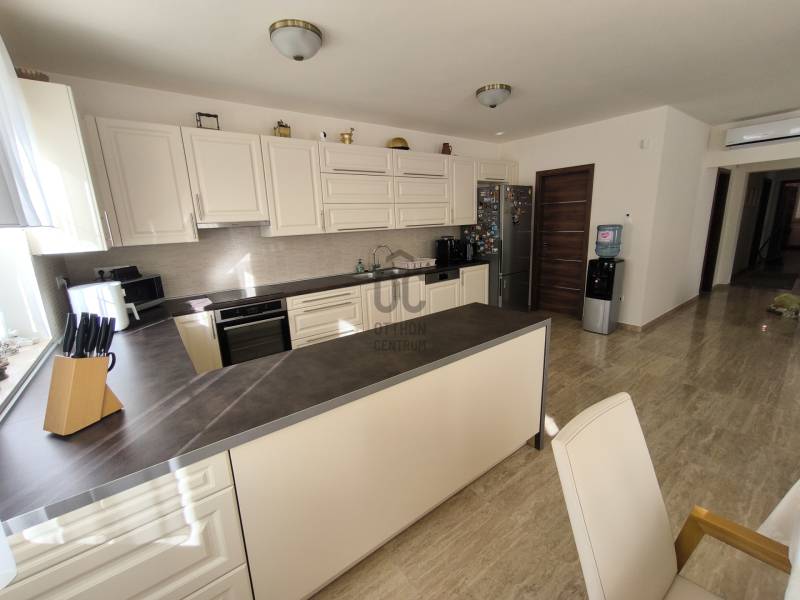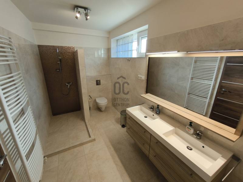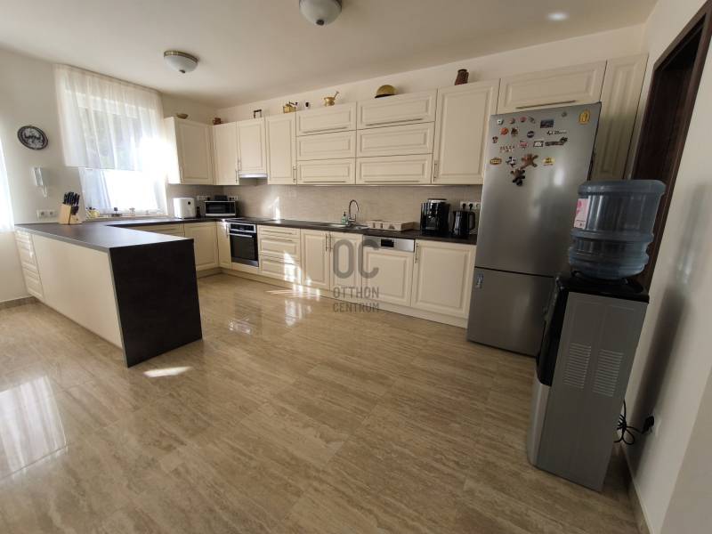 Prémium családi ház Solymár központjában – kiváló lokációbanSolymár szívében, minden fontos szolgáltatás – iskola, óvoda, üzletek, tömegközlekedés – közvetlen közelében eladó egy modern, prémium anyagokból épült, újszerű családi ház.Az ingatlan csendes utcában található, mégis pár perc alatt elérhető Budapest vagy a környék főbb közlekedési útvonalai.A ház alsó szintje teljesen akadálymentesített, így idősebbek vagy mozgásukban korlátozottak számára is kényelmesen használható. A korszerű gépészeti megoldásoknak – többek között a hűtő-fűtő klímának, a padló- és radiátoros fűtés kombinációjának – köszönhetően az ingatlan rendkívül alacsony fenntartású.A gondosan megtervezett terek és a két szint elrendezése lehetővé teszik, hogy az épületet akár két generáció együttélésére vagy külön lakrészek kialakítására is alkalmassá tegye az új tulajdonos.Főbb jellemzők:Modern, energiatakarékos épület – alacsony rezsiKlimatizált, korszerű fűtési rendszerPrémium ajtók, burkolatok és beépített bútorokGondozott, intim kert automata öntözőrendszerrelTeljes biztonsági rendszer (kamerák, riasztó)Tehermentes, azonnal költözhető ingatlanEz a ház ideális választás mindazoknak, akik szeretnék ötvözni a városi kényelem és a nyugodt, zöldövezeti élet előnyeit – legyen szó családalapításról, többgenerációs együttélésről vagy akár otthoni munkavégzésről. |