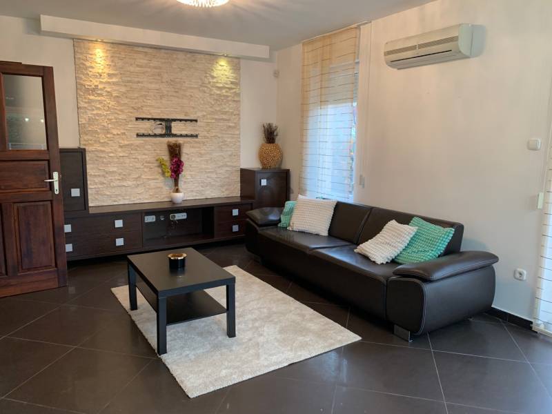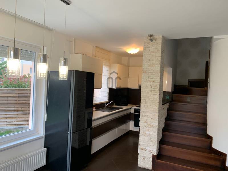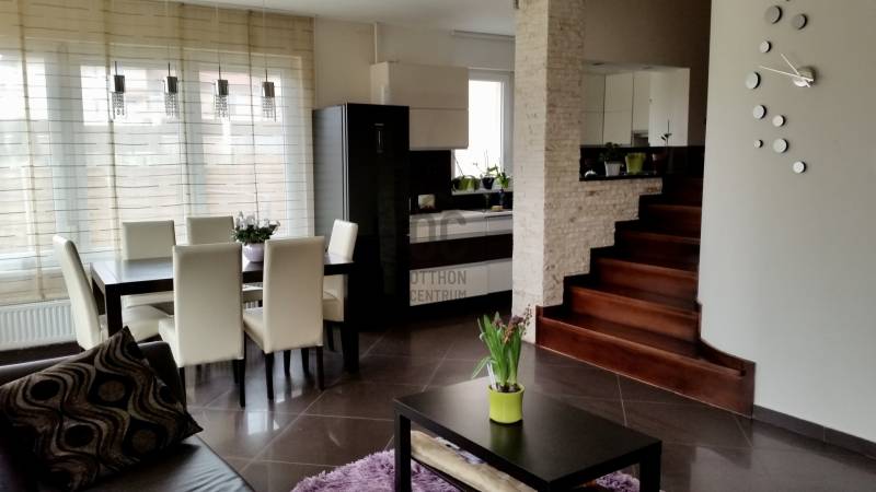Buda, 22.kerületének legszebb részén, Rózsavölgyben megvételre kínálok egy 2011-ben épült szélső sorházi ingatlant. Elhelyezkedéséből adódóan, ikerháznak is megfelel.A háromszintes lakás, alsó szintjén található egy garázs (egy gépkocsi számára),valamint még egy nyitott beállóhely, mosókonyha, hobbi, vagy vendégszoba, tároló helyiségek, és tusoló található.A földszinten az előszobából nyílik egy mosdó-kézmosóval, szép nagy üvegportálos nappali-étkező-konyha és egy kertkapcsolatos, kertre néző terasz van.Az emeleten jelenleg két hálószoba és egy nagy méretű fürdőszoba van, de könnyedén kialakítható még egy félszoba is.A saját használatú lekerített 232nm-es kert, intim, de még további lehetőséget nyújt a kertrendezésnek. A fenti szobákhoz szép panorámás erkélyek tartoznak. A fűtésről egy vadiúj Ariston kondenzációs kazán, a hűtésről klímák gondoskodnak. A műanyag nyílászárók redőnnyel,szúnyoghálóval felszereltek.Az igényes beépített és gépesített konyha, a gardrób és beépített szekrények a vételárban benne vannak.Gyermekes családnak ideális otthona lehet.Jogilag rendezett, külön albetéttel rendelkezik a tehermentes ingatlan.AZONNAL KÖLTÖZHETŐ!!Az ingatlan rugalmasan megtekinthető.Kiváló a megközelíthetősége, közel van a Savoya Park bevásárlóközpont,a budafoki piac, az Egérút, M0,M1-M7autópályák, BKV járatok, de a belváros is gyorsan elérhető. |