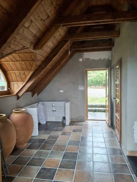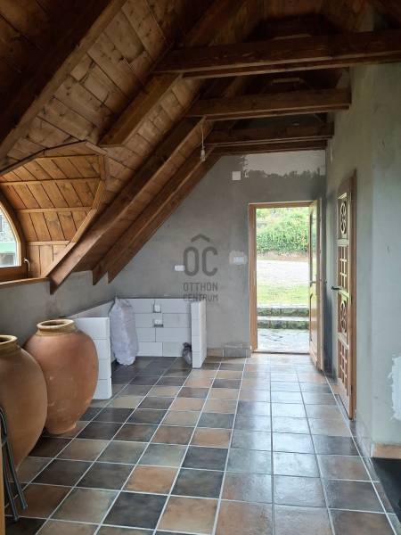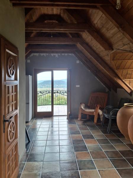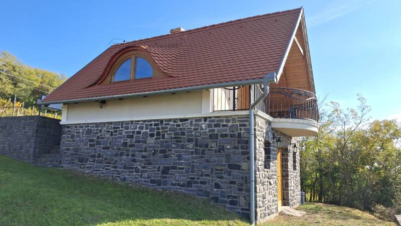Badacsonytördemicen a Római útról megközelíthető nyaralót ajánlok figyelmébe!A hegy közepén fekvő ingatlanból gyönyörű panoráma tárul elénk a Balatonra, a hegy bazaltorgonáira és Szigligetre.Kiépített út vezet a házhoz, ahol több autó számára kialakított parkoló biztosított.KIEMELT MEGBÍZÁS, CSAK AZ OTTHON CENTRUM KÍNÁLATÁBAN!A lépcsőzetes kialakítású telek nem túl nagy mérete ( 860 m2 ) optimális, gondozása sok időt nem igényel, szőlővel betelepített.A telek minden pontjáról megcsillan a Balaton víztükre, de a ház háta mögött a hegy is pazar látképet ad.A környező pár szomszéd után pihentető sétára indulhatunk az erdőbe vagy a hegytetőre.A ház falazata tégla, bazaltkő támfalakkal kiegészülve.A tető hódfarkú héjazatot kapott, szigetelt.A pinceszinten az előtér, kamra és bortároló kialakítás külön lakrésszé változtatható.Az emeleten a nagy légterű nappali- konyha és fürdőszoba befejezésre vár.A nyílászárók fenyőből készültek, dió lazúrral.A villany bekötésre került, a szennyvízhez az emésztő biztosított.Víz jelenleg nincsen, ciszternával vagy kútfúrással megoldható.Gazdasági épület, kifüggesztés köteles.A Badacsony a Tapolcai- medence legmagasabb, ikonikus hegye.A szőlőtermesztésről, borozóiról híres, kedvelt üdülőhely.A közelben több strand és étterem várja a vendégeket.Ha kérdése merült fel vagy szeretne időpontot egyeztetni, várom megtisztelő hívását! |