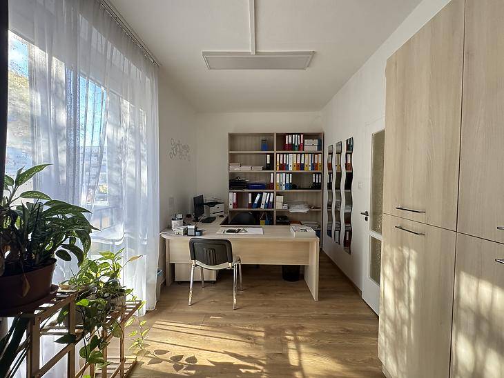 Kiadó iroda Csepelen – Kossuth Lajos utca 30–46. - IRODA HELYISÉGKiadó Csepelen, a Kossuth Lajos utca 30–46. szám alatt egy 112 m² alapterületű, kétszintes, világos és jól beosztású irodahelyiség-együttes. Az ingatlan öt különálló irodahelyiségből áll, így ideális választás lehet ügyvédi irodának, könyvelőirodának, IT cégnek, tanácsadó vállalkozásnak vagy bármilyen más adminisztratív tevékenységet végző cég számára.Az iroda nem akadálymentesített, a helyiségek lépcsőn keresztül közelíthetők meg. Ezért kérjük, hogy az érdeklődők ezt a szempontot is vegyék figyelembe a megtekintés előtt.Az alsó szinten egy tágas előtér található, ahol egy mosdóhelyiség és egy nagy tárolószekrény is helyet kapott. Itt található a villanyhálózat is, amely 3×16 amper teljesítményű, valamint ipari áram is rendelkezésre áll. A felső szinten öt különálló irodahelyiség, egy tárgyaló, egy teljesen felszerelt konyha, valamint egy külön mosdóhelyiség található.A konyha gépesített, mosogatógéppel, hűtőszekrénnyel és mikróval felszerelt. Az iroda világos és napos fekvésű, így a munkakörnyezet kellemes és inspiráló. Az épület csendes, nyugodt környezetben található, mégis könnyen megközelíthető, hiszen a HÉV-megálló és a buszmegálló néhány perces sétával elérhető.Az épületben központi fűtés működik, egyedi mérőórákkal ellátva, így a fogyasztás pontosan nyomon követhető. A fűtés díja fix 9.300 forint/hó. A közös költség 30.000 forint, a szemétdíj 2.900 forint havonta. Az irodaház kamerarendszerrel és őrzéssel is rendelkezik, amely folyamatos biztonságot garantál.A berendezés részben maradhat, ez megegyezés tárgyát képezi. Ha a bérlőnek valamire nincs szüksége, az eltávolítható. Az internet-hozzáférés igény szerint biztosított, szintén megállapodás alapján. A parkolás az épület előtt és a környéken ingyenes.A bérleti díj 290.000 forint + ÁFA/hó. Egy évnél hosszabb bérleti idő esetén az ár egyéni megállapodás alapján kedvezményesen módosítható.Ez az iroda tökéletes választás azok számára, akik egy kényelmes, biztonságos és modern munkahelyet keresnek Csepelen, frekventált, mégis nyugodt környezetben. |