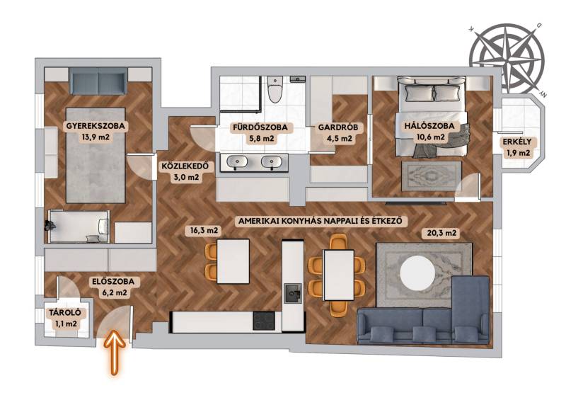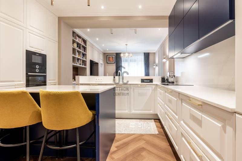 Budapest I. kerületében, Krisztinavárosban keresi új tulajdonosát egy 83 m2-es, tágas és világos terekkel rendelkező, LAKBERENDEZŐ TERVEI ALAPJÁN TELJESKÖRŰEN FELÚJÍTOTT, 3 külön nyíló szobás, erkélyes lakás. Ha NÍVÓS KÖRNYÉKEN szeretné megtalálni hangulatos új otthonát, értékeli a zöld környezetet és a belváros közelségét, akkor ezt a kiváló alaprajzzal rendelkező, modern és minden igényt kielégítő lakást feltétlenül nézze meg!** KÖRNYÉK ÉS KÖZLEKEDÉS ** - I. kerület, Krisztinaváros, a Naphegy lábánál fekvő, KÖZPONTI elhelyezkedésű CSENDES utca.- Átmeneti zóna a Gellérthegy természetesebb, zöld részei és a Naphegy városiasabb, infrastruktúrában gazdag területe között.- PRÉMIUM TERÜLET a Naphegy utca, a Gellért park, Hováth-kert, a Czakó kert és a Déryné közvetlen közelében.- A helynek van történelmi és esztétikai értéke is, ami plusz élményt ad a hétköznapokban.- A lakástól néhány perc alatt elérhető minden, ami a hétköznapokhoz szükséges.- Közelben bölcsőde, óvoda, Kormányablak, Önkormányzat, gyógyszertár, posta, bankok és szolgáltatók sokasága.- A Gellérthegy kiváló hely sétákra, kirándulásra, sportolásra ott a Tabán, az Oxigén wellness és a kerületi lakosoknak díjmentes Czakó Szabadidőközpont.- A közlekedés jól kiépített a környéken, a Dózsa György Tér, Naphegy Tér, Krisztina Tér – autóbuszokkal, villamossal, metróval is elérhető.- A Krisztina téri közlekedési csomópont és a Dózsa György tér a lakástól 3 perces sétatávolság, így a belváros is könnyen megközelíthető.- Parkolás szempontjából a környező utcák mindegyike fizető övezetes, de bejelentett lakcím esetén, kerületi parkoló kártya éves ötezer forintért kiváltható.** AMIT A HÁZRÓL TUDNI KELL ** - 1930-ban épült, 15 lakásos, rendszeresen karbantartott társasház.- Korai modern stílusú, szépen KARBANTARTOTT ÉPÜLET külső és belső homlokzata jó állapotú, lépcsőháza rendezett.- A ház műszakilag is karbantartott, az elektromos hálózatot már kicserélték.- Lakóközössége barátságos, befogadó, családias közösség.** MIÉRT IDEÁLIS A LAKÁS? ** - Második emeleti, 83 m2-es, 3 szobás, VILÁGOS ÉS TÁGAS terekkel rendelkező, nagypolgári ingatlan.- Lakberendező tervei alapján, magas minőségű anyagok használatával, a nagypolgári stílusjegyeket megtartva, TELJESKÖRŰEN FELÚJÍTOTT otthon.- A 310 cm-es belmagasság segíti, hogy a lakás KARAKTERES STÍLUSA és IGÉNYES ANYAGHASZNÁLATA jól érvényesüljön. - A visszafogott eleganciát sugárzó pasztell színek és a fa tónusok harmóniáját izgalmasan ellenpontozza a kiegészítő színként megjelenő kék árnyalat.- A lakás tájolása dél-nyugati, hatalmas nyílászáróinak köszönhetően az élettér jó fényviszonyokkal rendelkezik.- Felosztása: előszoba, háztartási helyiség, közlekedő, amerikai konyhás nappali és étkező, két külön nyíló szoba, gardrób szoba, fürdőszoba toalettel, erkély.- Központi helyisége a hatalmas, egy légtérben elhelyezkedő amerikai konyhás nappali és étkező, amelynek bútorzata stílusos összhangot alkot.- Az egyedileg tervezett és gyártott magas minőségű konyhabútor a Silestone kőből készült munkalappal elegáns és tartós designt biztosít. - A modern Bosch konyhagépekkel felszerelt nagy méretű konyha minden igényt kielégít.- A gyerekszoba a ház csendes, belső udvara felé néz, a nappali és az erkély kapcsolatos szülői hálószoba utcai nézetű.- A szülői háló és a fürdőszoba között egy elegáns, walk-in gardrób teremt kényelmes átjárást.- A közlekedőből is megközelíthető, zuhanyzós fürdőszobában Laufen szaniterek és Hansgrohe csaptelepek lettek felszerelve.- Az előszobából nyíló háztartási helyiségben kapott helyet a mosógép és a szárító, igény esetén ebben a helyiségben vendég toalett kialakítható.- A fürdőszoba modern márványhatású hidegburkolattal a többi helyiség elegáns és időtálló, halszálka mintában lerakott vinyl parkettával burkolt.- A kétrétegű, hőszigetelt műanyag nyílászárók minden helyiségen redőnnyel és szúnyoghálóval felszereltek.- Minden helyiségben padlófűtés lett kialakítva, ami egyenletes hőmérsékletet biztosít a hidegebb napokon is.- Fűtéséről és meleg víz ellátásáról energiatakarékos kondenzációs cirkó kazán, hűtéséről minden helyiségben hűtő-fűtő klíma gondoskodik.- Közös költség 29 050 Ft/hó, amely tartalmazza a vízdíjat, lépcsőház takarítását és a szemétszállítást is.- A villany és gázszámla egyedi fogyasztás alapján fizetendő.- A lakásban található teljes beépített bútorzat a vételár részét képezi.- A társasház pincéjében egy 4 m2-es zárható tároló is a lakáshoz tartozik.** A LAKÁS MEGTEKINTHETŐ ** - Személyesen, előre egyeztetett időpontban,- 3D webséta segítségével, kényelmesen, akár otthonról is.** FINANSZÍROZÁSI KÉRDÉSEKBEN– ONLINE IS – SEGÍTÜNK ** - Bank-független hitelcenterünk díjmentesen versenyezteti az összes bank és hitelintézet ajánlatát.- Önnek csak annyi a dolga, hogy egyeztet munkatársunkkal, majd kiválasztja a hosszú távon is legkedvezőbb konstrukciót.- Szakértőink 20 év tapasztalattal, fogyasztóbarát lakáshitelekkel, babaváró hitellel és teljes körű CSOK Plusz és OTTHON START program ügyintézéssel várják.- Időpont-egyeztetéssel munkaidő után is elérhetők.Ha egy stílusos, minőségi felújításon átesett, különleges otthont keres prémium környéken — ami valóban más, mint a megszokott ’kirakatlakások’ — ezt érdemes személyesen is megismernie. Tágas, világos terek, modern kialakítás, kiváló alaprajz és nívós környezet várja — zöldövezetben, mégis a belváros közelében. 