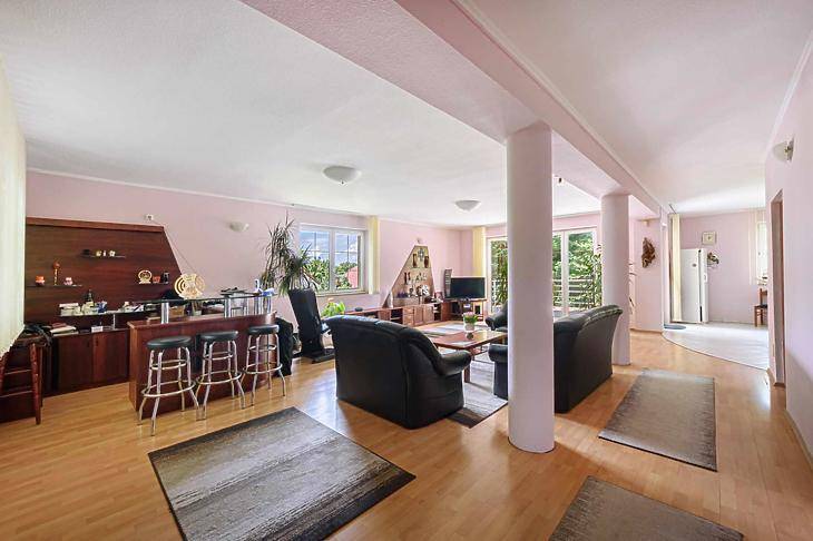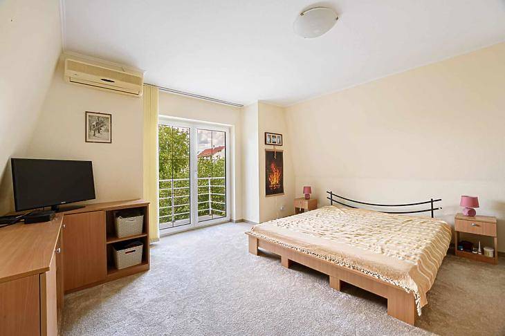 Budapest XVII. kerületében, Rákoskerten eladó egy 182 m²-es önálló családi ház, mely egy 740 m²-es telken helyezkedik el.Főbb jellemzők:Az ingatlan 2000-ben épült téglából, beton alappal és födémmel rendelkezik.A házhoz tartozik egy 107 m²-es szuterén szint is, mely lakótérnek is alkalmas, valamint magába foglal egy 29 m²-es garázst is.A fűtés a földszinten radiátorral, a felsőbb szinteken padlófűtéssel történik.Központi porszívó minden szinten elérhető.Minden ablak és ajtó korszerű nyílászáróval felszerelt.Néhány helyiségbe hűtő-fűtő klíma lett felszerelve.Helyiségek elosztása:Földszint: 3 szoba (az egyikben szauna és szolárium), mosókonyha, tároló, garázs.Magasföldszint: tágas, amerikai konyhás nappali (innen nyílik a nagy terasz), fürdőszoba és külön mellékhelyiség, közlekedő és lépcsőház.A nappali és közlekedő parkettával, a konyha és mosdó pedig kővel burkolt.Tetőtér: 3 szoba (két szobának saját terasza van), fürdőszoba és külön mellékhelyiség, közlekedő.A szobákban padlószőnyeg, a fürdőszobában és mosdóban kő burkolat lett lehelyezve.További extrák:A telken található egy fa melléképület és egy medence.Mind a három szint egy lépcsőházból közelíthető meg.A környék: Rákoskerten, jó közlekedésnél. Közelben található iskola, óvoda, gyógyszertár, orvosi rendelő bevásárlási lehetőség. Az M0-ás autópálya pár perc alatt közelíthető meg. Közelben 97 E, 162, 197, 262 buszjáratok, valamint, a 990-es éjszakai járat érhető el.Finanszírozás:Az ingatlan banki hitelre is megvásárolható, amelyhez irodánk ingyenes tanácsadást biztosít.Irányár: 174,9 M Ft.Vevőink számára a közvetítés díjtalan!(A hirdetésben szereplő adatok tájékoztató jellegűek.) |