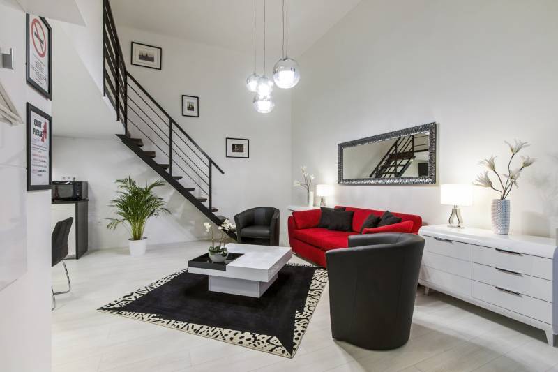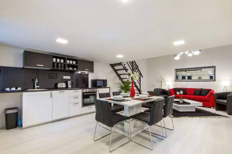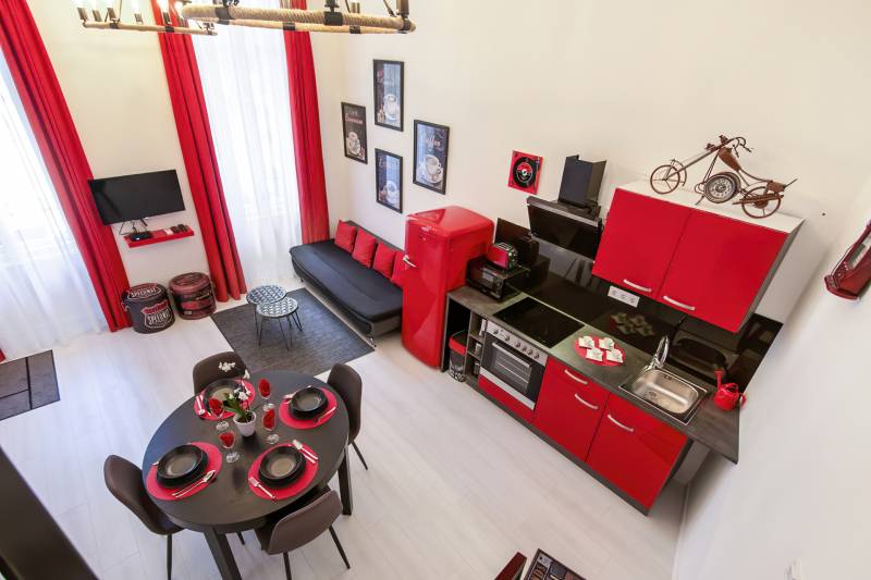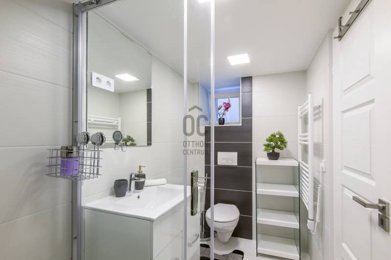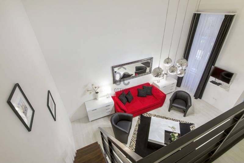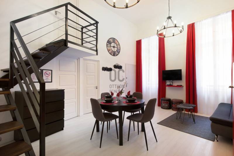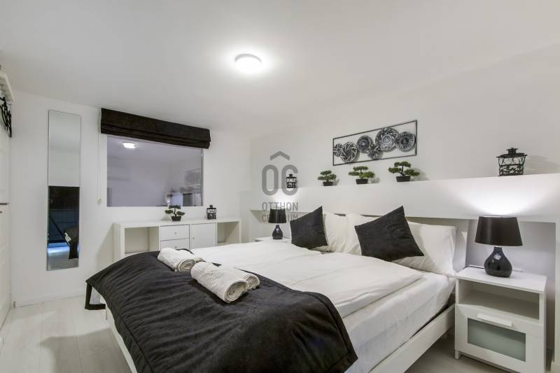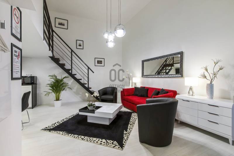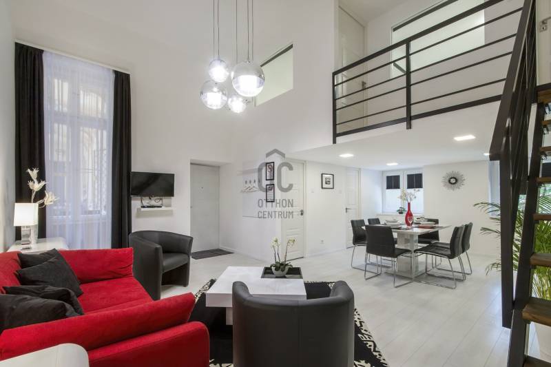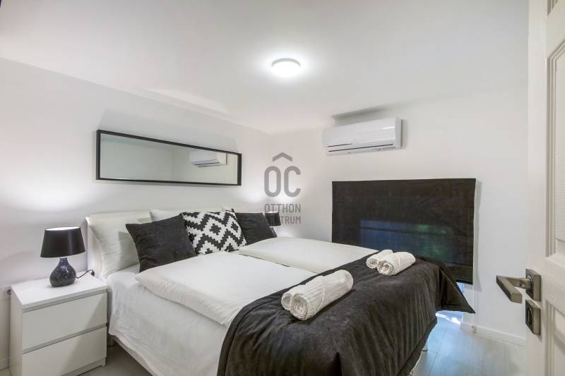 A Szent István körút 5. kerületi oldalán eladó lakás/komplett befektetői ingatlan.A kettéválasztott lakás kulcsrakész üzleti befektetés, akár hosszú, akár rövid távú bérbeadásra, de családoknak is ajánlott. Mindkét szempontból kiváló elhelyezkedés jellemzi az első emeleti ingatlant.Jelenleg nagy hozammal rövid távon hasznosított, érvényes szálláshely üzemeltető engedéllyel rendelkezik, amely a jogtulajdonos Bt. átvételével jogfolytonosan továbbvihető. Mivel új engedély kiadása nem lehetséges, ez ritka érték a belvárosban, különösen az 5. kerületben!A két lakrész mindegyike amerikai konyhás nappalival és 2 hálószobával rendelkezik, 2, ill. 1 fürdőszobával, így 2x6 fő kényelmes elszállásolására alkalmasak.A vételár tartalmazza a teljes berendezést és gépesítést, mindent, ami az azonnali továbbüzemeltetéshez szükséges.A lakás alapterület 78 m2 (tulajdoni lapon), amelyet összesen 32 m2 felső szint egészít ki, ami a 430 cm-es belmagasságnak köszönhetően nem galéria (hálószobák, fürdőszoba található itt zárható ajtókkal 210 cm-es belmagassággal). |