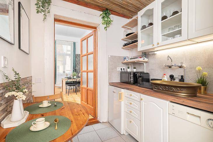 Kiadó lakás Budapest VII. kerület, Jósika utcaCsendes, de fiatalos lakóközösségben, folyamatosan fejlődő, rendezett lépcsőházban kínálunk kiadásra egy teljeskörűen felújított, gépesített és modernül berendezett lakást.A lakás kényelmes, világos és ízlésesen berendezett, minden megtalálható benne, amire a mindennapokban szükség lehet – ide valóban csak egy bőrönddel kell érkezni.A lakás azonnal költözhető, két havi kaució, tárgyhavi lakbér és a közjegyzői díj fele megfizetése mellett.Dohányzás nem megengedett, kisállat megbeszélés szerint hozható.A környék kiváló infrastruktúrával és közlekedéssel rendelkezik: néhány perc sétára található a Blaha Lujza tér, az M2-es metró, több villamos- és buszjárat (4-6-os villamos, 7-es buszcsalád), így a belváros bármely pontja gyorsan elérhető.A közelben számtalan bolt, étterem, kávézó, fitneszterem és egyetem található, így fiatal pároknak, diákoknak vagy akár egyedülállóknak is ideális választás. |