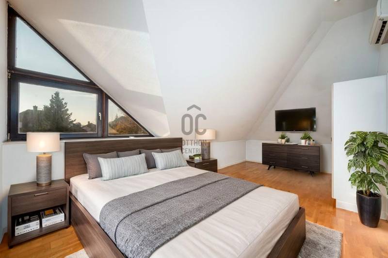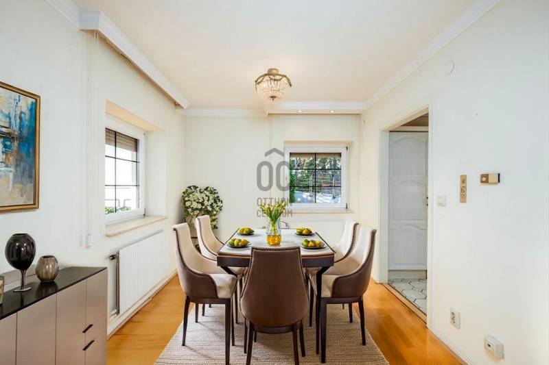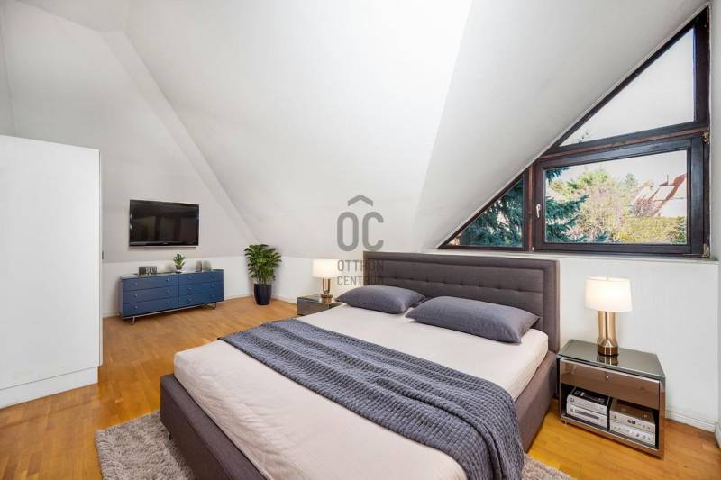 Megvételre kínálunk Pálvölgy egyik legszebb részén egy 210 m2-es, nagyon világos otthont gyönyörű kerttel!A ház 1992-ben épült, 2000-ben részleges felújításon esett át.Budapest egyik legkedveltebb, zöldövezeti és családbarát részén fekszik, kiváló közlekedéssel és infrastruktúrával.Elrendezés:Tetőtér: 2 hálószoba, TV-szoba, gardrób, fürdőszoba WC-velFöldszint: nappali-étkező, konyha, közlekedő, fürdőszoba WC-vel, gardrob, eloszőba, hálószoba, teraszPinceszint: garázs, mosókonyha, tároló, hobby-szobaNéhány perces sétán belül található több óvoda és iskola (pl. Cseppkő Óvoda, Áldás Utcai Általános Iskola), valamint helyi kisboltok és szolgáltatások.Nagyobb bevásárlási lehetőségek (SPAR, Lidl, Stop Shop, GOBUDA Mall) autóval 5–10 perc alatt elérhetők.A tömegközlekedés megbízható: több buszjárat (11, 29, 65, 111) könnyen elérhető, és gyors kapcsolatot biztosít a belváros vagy a H5-ös HÉV felé.A környék csendes, biztonságos, kiválóan alkalmas családoknak, akik a természet közelségét, mégis a városi kényelem előnyeit keresik.Bővebb információért, megtekintési időpontért vegye fel velem a kapcsolatot.Hívását a hét bármely napján örömmel fogadom! |