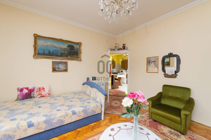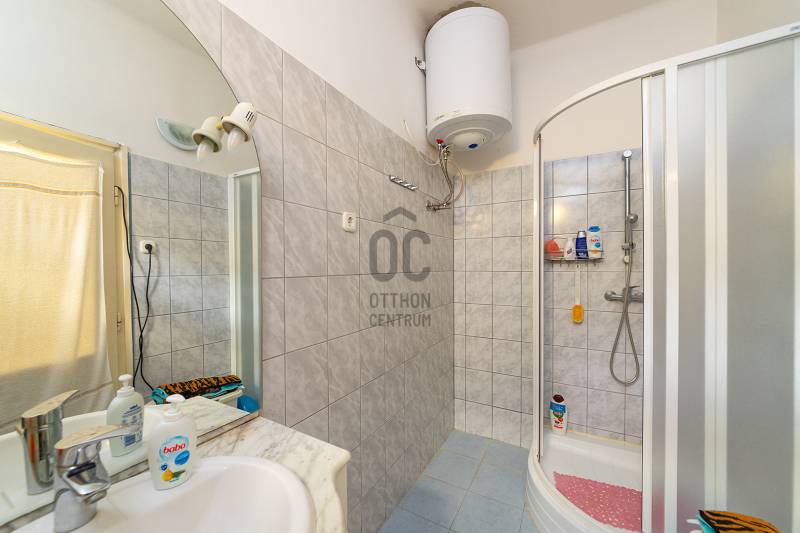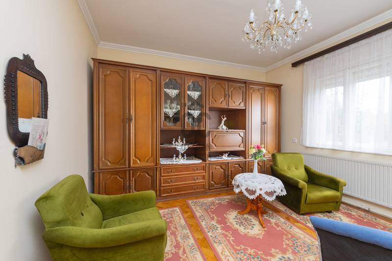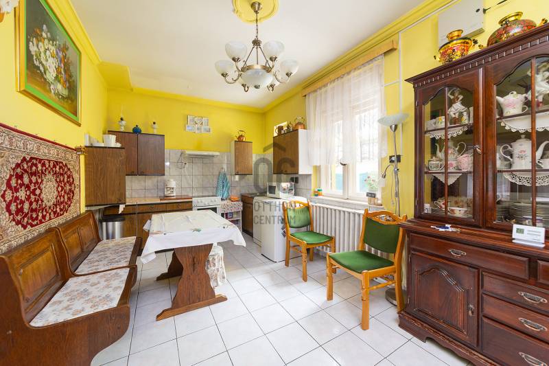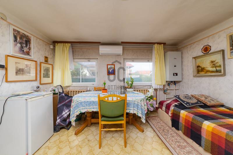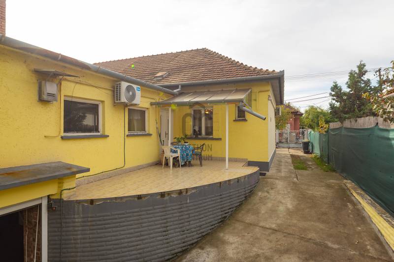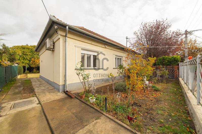 XVIII. kerületben a Béke tér környékén csendes mellékutcában, de kiváló közlekedéssel kínálunk megvásárlásra egy földszintes kialakítású ikerház felet. Klasszikus ikerház, a telek középen kerítéssel elválasztva, önálló utcai bejárat mindkét ikerfél lakói számára. A ház tégla építésű, cserép fedéses, belső elosztása tágas és kényelmes. A fedett teraszról nyílik a bejárat, egy jó méretű előszobából jutunk be a nagy méretű konyha-étkezőbe, innen két déli tájolású, világos szobát találunk, továbbá egy jó állapotú fürdőszoba, egy külön mellékhelyiség és egy belső lépcsőház is helyet kapott, innen közvetlenül juthatunk le a szuterén szinten lévő nagy garázsba. A házban kialakításra került még két szoba. A fűtést gázcirkó biztosítja, nyáron a kellemes hőmérsékletről klíma gondoskodik. A telek 303 nm, csatorna utcáról beköthető. Telken belül több autóval is parkolhatunk, a garázsban is további egy autó elfér, illetve van hely tárolásra is. A ház mögött egy kerti tároló is kialakításra került szerszámoknak, sporteszközöknek. Az utcai kapu elektromos. Csendes, családi házas mellékutca, a közelben (6 perc séta) több buszmegálló is megtalálható: 166, 236, 266, vonatállomás 5 perc séta, iskola, bevásárlási lehetőség, posta 5-10 percen belül gyalogosan elérhetők. Az ingatlan jogi háttere rendezett, rövid időn belül birtokba vehető. |