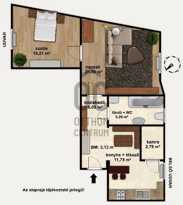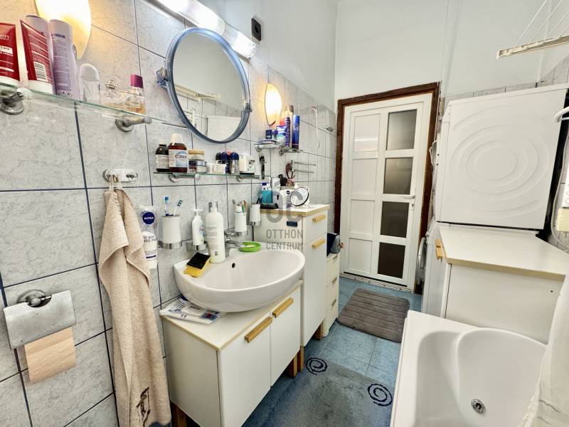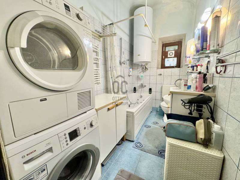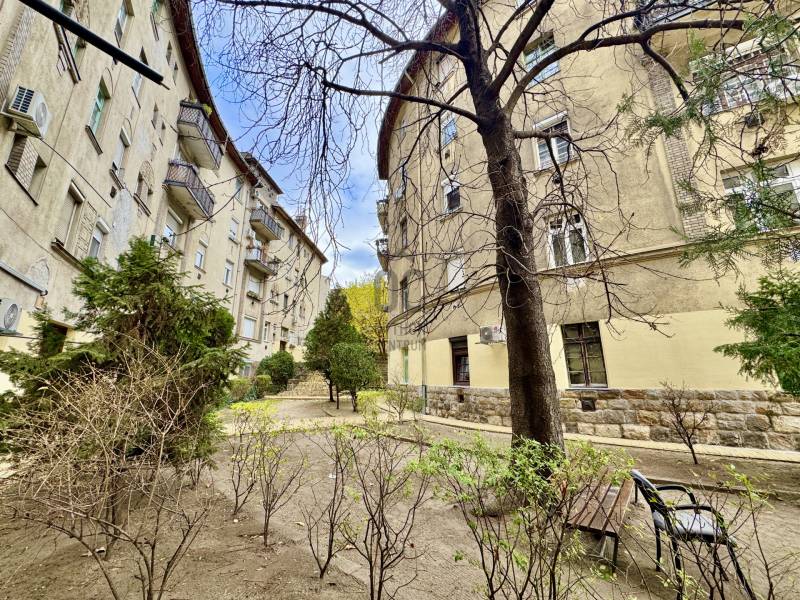 Harmat utca 10. – 64 m²-es földszinti otthon , belső udvarral, nagy terekkel, természetes fa hangulattalVan az a fajta otthon, ahol nem kell magyarázni a hangulatot. Belépsz, és érzed, hogy ez egy régi, stabil pesti ház: vastag falak, nagy belmagasság, csendes belső udvar, ahol a pad mellett lehullanak a levelek, és még a szél is lassabban jár.A földszinti, 64 m²-es lakás pontosan ezt hozza.Tágas, jól szervezett terek, nyugalom, régiségek szeretete és rengeteg természetes fa – olyan melegség, ami ma már ritkaság.Az alaprajz különlegesen jó:egy közel 22 m²-es nappali, mellette egy intim, udvarra néző hálószoba, tágas 12 m²-es étkezős konyha kamrával, egy szépen rendezett közlekedőtér és egy kényelmes méretű fürdő várja azt, aki szereti a funkcionális, élhető otthonokat.A konyha és az étkező része igazi békebeli tér. A körbeépített sarokpad, a természetes fa borítások, a falon sorakozó képek és a látszó gerenda együtt adják azt a meghitt családi hangulatot, ahol jó leülni a reggeli kávéra vagy egy hosszabb esti beszélgetésre. A kamra külön ajándék – manapság már keveseknek jut ilyen.A nappali hatalmas, könnyen variálható, többféle funkciót is elbír egyszerre: dolgozósarok, tévés rész, vendégterület – szépen elfér benne minden.A nagy fa szekrények, polcok és a falburkolatok mind kézzel készült, egyedi darabok; ez tartja egyben az otthon meleg hangulatát.A hálószoba az udvar felé néz – csendes, zavartalan, természetes fénnyel. Pont az a helyiség, ahol könnyű kipihenni magad.A fa nyílászárók eredetiek, szépen megőrzött állapotban. Ezek adják az egész lakás karakterét: meleg tónus, természetesség, valódi anyagok.A fűtést és hűtést több klíma segíti, ami földszinten külön előny.A lakás állapota közepes – tiszta, rendezett, élhető, költözhető.Nem kér azonnali teljes felújítást, ugyanakkor bármilyen ízlésre könnyen ráhangolható.A társasház nagy, több lépcsőházas, zárt belső udvarral rendelkezik. A kapu biztonsági rendszerrel van ellátva, az utcáról nem lehet besétálni, így a környezet valóban nyugodt és védett.A Harmat utca elején járunk, ahol a közlekedés különösen jó: innen a város szinte bármely pontja gyorsan elérhető, akár autóval, akár tömegközlekedéssel.A ház belső udvara igazi kis kert: padok, növények, csend, nagy fák – olyan közeg, ahol jó megállni két lélegzetvétel között. Ez az a budapesti miliő, ami lassan eltűnik, és egyre nagyobb érték.- [ ] |