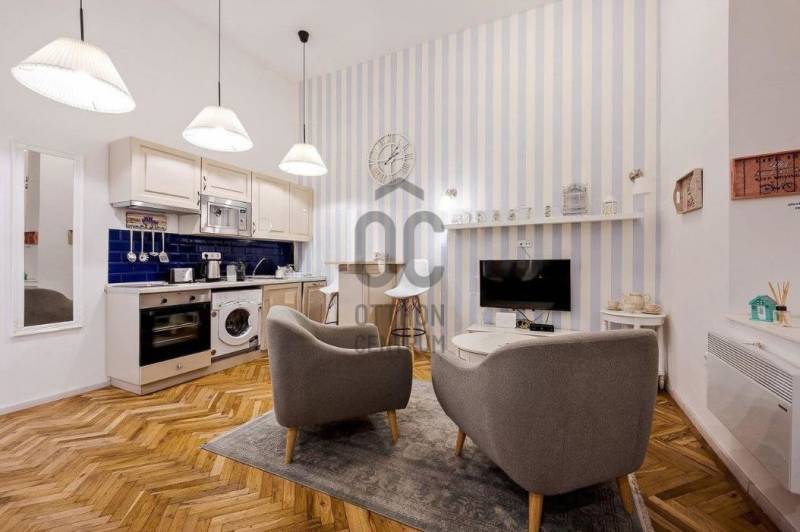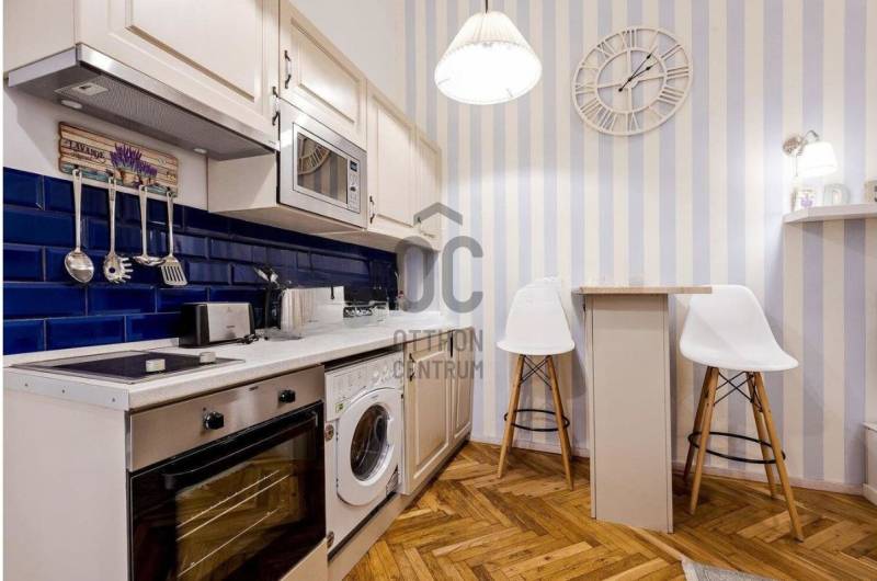 Budapest pezsgő szívében, a közkedvelt Nagymező utcában kiadó egy hangulatos, 1 szobás, teljesen bútorozott és gépesített földszinti lakás.Az ingatlan frissen felújított jellegű, nagyon szép állapotú, azonnal költözhető.Főbb jellemzők:kényelmes, világos egybenyíló térmodern bútorokkal berendezettteljesen felszerelt konyha (hűtő, főzőlap, sütő, stb.)igényesen kialakított fürdőföldszinti, könnyen megközelíthetőfrekventált, mégis csendesebb belvárosi elhelyezkedéskiváló közlekedés: metró, villamos, busz pár perc sétáraéttermek, színházak, üzletek közvetlen közelbenA lakás tökéletes választás egyedülállóknak vagy pároknak, akik szeretnének a város szívében, mégis kényelmes, igényes környezetben élni. |