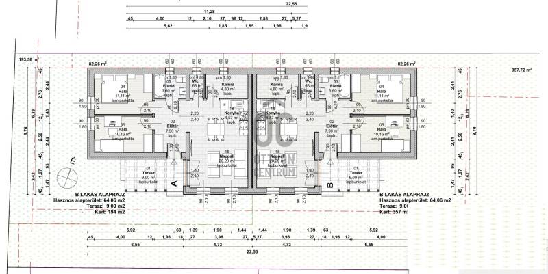 Dömsödön eladó• újépítésű• ikerház hátsó fele• nettó 64 m2, bruttó 82.26 m2• amerikai konyhás nappali + 2 hálószoba• fűtés: hőszivattyú + padlófűtés• 10 cm grafitos szigetelés• választható burkolatok: hidegburkolatok: 4.500 Ft/nm-ig. (30x30 sztender méretig),meleg burkolatok: 3.500 Ft/nm-ig• telek: 551.31 m2• terasz: 9 m2 |