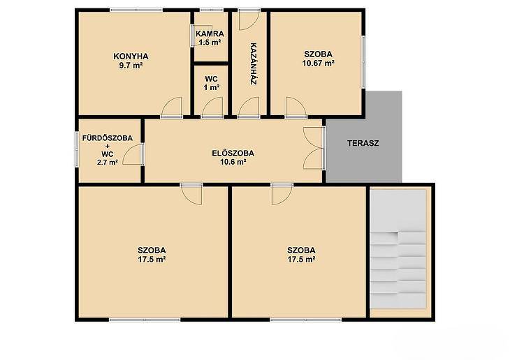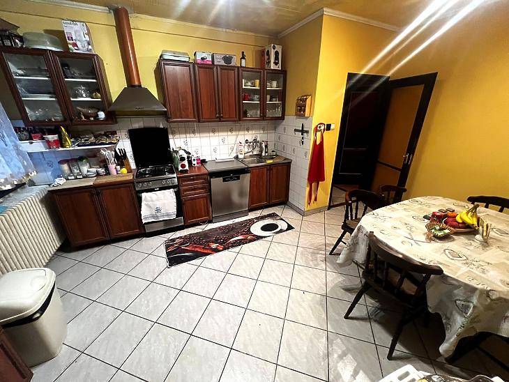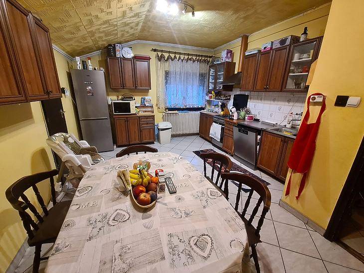 Gödöllő, Kertváros részén eladó egy 200 m²-es, két szinten elhelyezkedő, közepes állapotú családi ház, 698 m²-es telekkel és fedett kocsibeállóval.Főbb jellemzők:A ház téglából épült, beton alappal és betonfödémmel. A tető 15 cm kőzetgyapottal szigetelt.Az ablakok fából készültek, dupla üvegezésűek, belső reluxával.A ház fűtését gázkazán és egy vegyes tüzelésű kazán biztosítja, illetve az emeleten egy hűtő–fűtő klíma is felszerelésre került.A meleg vizet villanybojler biztosítja.A szobákban parketta, míg a többi helyiségben járólap burkolat található.Az emelethez külső, különálló lépcső lett kialakítva, így kétgenerációs házként is funkcionálhat.Elrendezés:Földszint: 3 szoba, konyha, kamra, kádas fürdőszoba, külön mellékhelyiség, előszoba, közlekedő.Emelet: 2 szoba, nappali, étkezős konyha, kádas fürdőszoba, mellékhelyiség.Környék:A környék csendes, rendezett, kertvárosias, mégis közel található a város központjához, a boltokhoz, iskolákhoz és a tömegközlekedéshez.A közelben számos bevásárlási lehetőség, gyógyszertár, bölcsőde, óvoda, iskola és játszótér található.Az M3-as autópálya néhány perc alatt megközelíthető. A közelben az 5, 45, 4, 4A és 24-es helyi buszjáratok érhetők el.Finanszírozás:Az ingatlan banki finanszírozással is megvásárolható, melyben irodánk ingyenes tanácsadással áll rendelkezésükre.Irányár: 91,9 M FtVevőink részére a közvetítés díjtalan.A hirdetésben szereplő adatok tájékoztató jellegűek. |