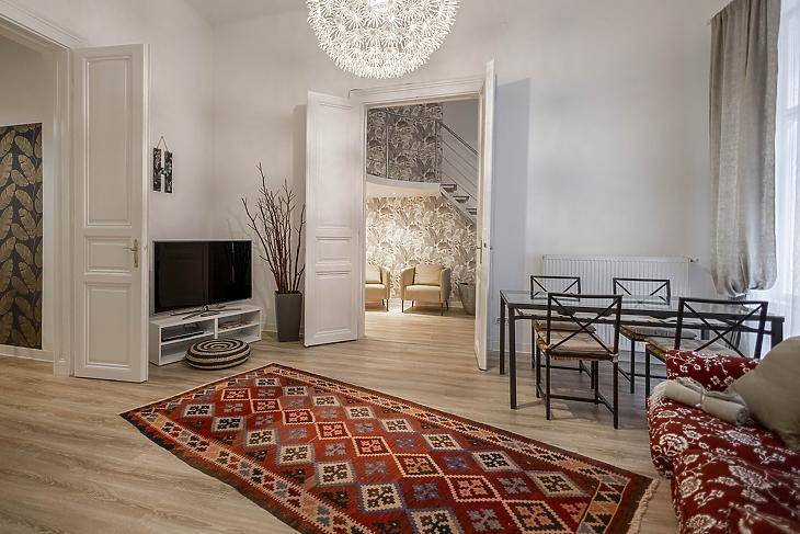 Hosszútávra kiadó egy gyönyörűen felújított, stílusos, nagy belmagasságú lakás a belváros egyik legkedveltebb részén, a Nagymező utca 41. szám alatt. A lakás modern kényelmet és egyedi, otthonos hangulatot kínál: igényes burkolatok, dekoratív tapéták, látványos lámpák és minőségi bútorok teszik különlegessé.A tágas nappali étkezővel és nagy ablakokkal vár, amelyhez egy hangulatos galériás háló, valamint egy különálló, teljes értékű hálószoba kapcsolódik. A teljesen felszerelt konyhában sütő, főzőlap, mosogatógép, nagy hűtő, mikrohullámú sütő és mosógép is rendelkezésre áll. Két modern, zuhanyzós fürdőszoba biztosít kényelmet több fő számára is. A lakás légkondicionált, és január 5-től költözhető.A Nagymező utca kiváló elhelyezkedésének köszönhetően minden könnyen elérhető. A környéken számtalan étterem, kávézó, bolt, színház és kulturális helyszín található. A közlekedés kimagaslóan jó: néhány perc sétára van az M1-es metró, több villamos (4-6, 47-49), valamint számos buszjárat, így a város bármely pontja gyorsan megközelíthető. A Nyugati pályaudvar és az Oktogon is percek alatt elérhető gyalog.Költözés feltétele: 2 havi bérleti díj + 2 havi közös költség (ez a kaució) valamint tárgyhavi lakbér megfizetéseA lakás ideális választás pároknak, dolgozó fiataloknak, aki szeretne hosszútávon egy igényes, hangulatos, teljesen berendezett otthonban élni Budapest szívében. |