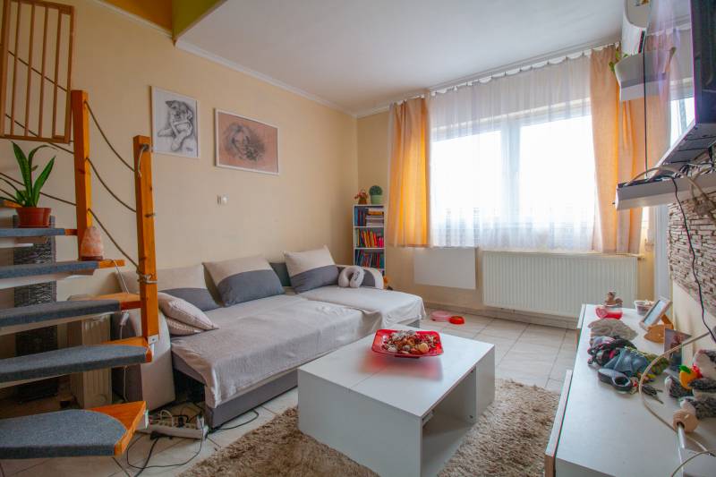 XVII. kerületben, a Rákoskeresztúri lakótelepen ELADÓ egy belső kétszintes, bruttó 42 m²-es (nettó 35 m²), jó állapotú, 2 szobás lakás, az öt szintes társasház legfelső, 5. emeletén.A lakás elrendezése praktikus és otthonos.A szobákban laminált parketta, a többi helyiségben igényes járólap burkolat található. A konyhában lévő konyhabútor a vételár részét képezi.A társasház tiszta, rendezett, kulturált és csendes lakóközösséggel.Kiváló infrastruktúra: a közelben minden megtalálható, ami a mindennapi élethez szükséges — bevásárlási lehetőségek, iskola, óvoda, orvosi rendelő, piac, valamint számos sport- és szabadidős lehetőség is néhány perces sétatávolságra van.Amennyiben a hirdetés felkeltette az érdeklődését, vagy szeretné személyesen is megtekinteni az ingatlant, hívjon bizalommal a hét bármely napján, akár hétvégén is!Jöjjön el, nézze meg, és tegyen ajánlatot!Hitelfelvétel esetén díjmentes tanácsadással és teljes körű ügyintézéssel állunk rendelkezésére.Ha pedig előbb meglévő ingatlanát szeretné értékesíteni, abban is örömmel segítünk. |