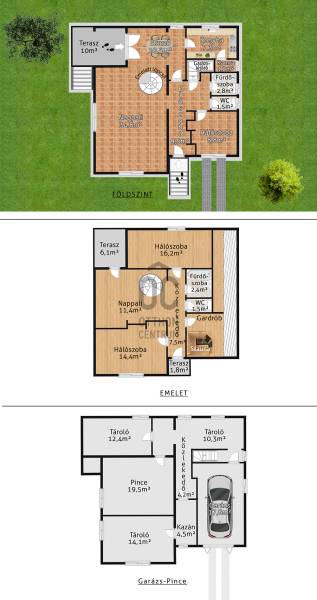 Megvételre kínálok a XVIII. ker. Miklóstelepi részen egy 1990-ben épült, 659 nm-es telken elhelyezkedő, összesen 242 nm-es, háromszintes, téglaépítésű, jó állapotú családi házat. Átmenő forgalomtól mentes saroktelken helyezkedik el körbejárható, kíváncsi szemektől védett kerttel. Az ingatlan minden igényt kielégít: 5 szoba, 2 fürdőszoba , külön wc, három erkély, szauna szoba, riasztóval védett. A belső terek rendkívül tudatos kialakítással, otthonos hangulattal rendelkeznek. Az alsó szinten tágas nappali, kényelmes konyha, egy szoba, fürdőszoba, külön wc és közlekedő található. Az emeletre elegáns csigalépcső vezet, ahol három szoba, egy fürdőszoba, külön wc, szauna szoba és tágas közlekedő biztosítja az otthon kényelmét. Már csak egy család hiányzik , hogy újra élettel teljen meg. Nem feltétlenül igényel teljes körű felújítást, de kisebb esztétikai vagy funkcionális beavatkozásokkal (festés, kisebb javítások, modernizálás) az állapota és az értéke tovább javítható, és igazán kellemes otthonná alakítható. Az ingatlan fűtését cirkó- és padlófűtés biztosítja, amit még kiegészít CASCADE split klíma is.A pince szinten garázs (elektromos kapuval), valamint két további helyiség található. A kertben akár két autó fedett beállása megoldott.Az épület 35 cm-es porotherm téglából épült, betonfödémes, cseréptetős és napelemmel felszerelt.Tömegközlekedés: 93, 93A, 198, 217, 217E, 200E buszok a közelben elérhetők.Várom megtisztelő hívását, akár hétvégén is! |