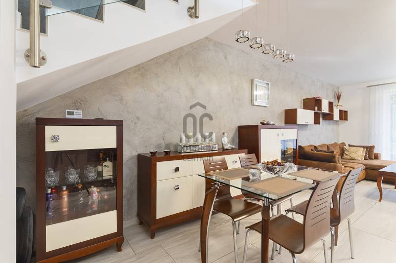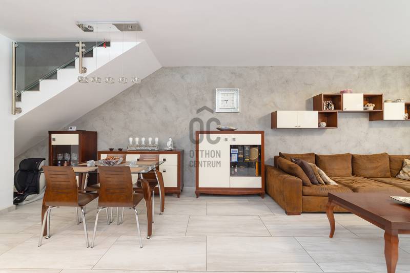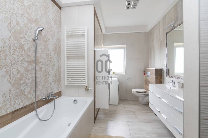 (Részletesebb műszaki leírásért keressen elérhetőségeim egyikén)Rákosszentmihályon családi házas övezetben vált eladóvá ez a szinte minden igényt kielégítő impozáns ikerház, akár teljes bútorzattal, melynek része a kerti konyha és az 5 személyes Wellis jakuzzi is! 2021-ben épült és jelenlegi tulajdonosai időt és energiát nem sajnálva alakították ki mostani formáját. A ház bármely szegletét vizsgálva minőségi anyagokat, átgondolt megvalósítást és letisztult megjelenést látunk. Az egész házban olasz burkolatokat, Wellis szanitereket és Hansgrohe csaptelepeket találunk. Az amerikai konyhás nappalihoz remekül ’’ad hozzá’’ még több teret a hátsó kert felé nyíló hatalmas teraszajtó. Lássuk tömören a további extrákat, műszaki tartalmat a teljesség igénye nélkül:- Gáz (kondenzációs cirkó kazán) fűtés- Padlófűtés a teljes alapterületen- Mitsubishi multisplit klíma, az emeleten mennyezeti befúvással- Gépesített modern konyha (Bosch gépek)- Motoros zsaluziák- 2 fürdőszoba- Riasztó, kamera- Elektromos kapuk- 6,5 Kw-os napelem rendszer- 3x32A elektromos hálózat- A kertben időtálló anyagokból épült, fedett kerti konyha található, valamint egy 5 személyes jakuzzi, melyek a vételár részét képezik. Természetesen öntözőrendszert is kiépítettek, egy szép kerti csapot éskültéri lámpákat- Kamerás kaputelefon- A legnagyobb emeleti hálóhoz francia erkély, az utcafrontihoz terasz, a legkisebbhez pedig egy erkély tartozik. Mindegyik üvegkorláttal- 1 autó számára garázs található a házban, de egy fedett beállót is építettekHosszan sorolhatnám még az érveket, de inkább jöjjön el és győződjön meg róla személyesen, hogy miért lesz ez a ház tökéletes az Ön és családja számára.Irodánk bankfüggetlen pénzügyi szakértője díjmentesen megtalálja Önnek a legkedvezőbb finanszírozási ajánlatot!Ez az ingatlan a \"Hűség csomag\" megbízási portfólióhoz tartozik. Részletek az Otthon Centrum weboldalán. |