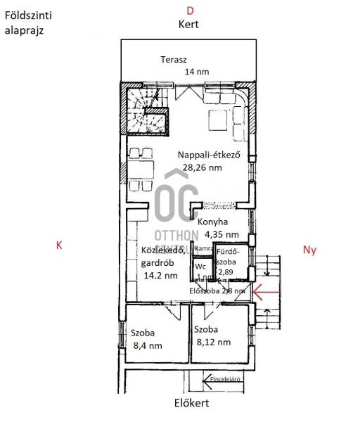 XVII. kerületben Rákoskerten csendes mellékutcában, kiváló közlekedés mellett kínálunk megvásárlásra egy önálló családi házat pincével, összközműves, déli tájolású 583 nm-es telekkel. A lakóépület földszintjén az előszobából nyílik két szoba, egy fürdőszoba, egy külön mellékhelyiség, egy nagyobb közlekedő-gardróbból juthatunk be a konyhába, továbbá a teraszon át kertkapcsolatos, déli tájolású napfényes nappali-étkezőbe. A terasz méretéből adódóan kiválóan alkalmas családi összejövetelekre, nyári ebédekhez.A nappaliból nyílik a kényelmes lépcsőház, innen jutunk fel az emeletre. Itt egy nagy nappali (könnyedén zárható szobává alakítható), egy konyha, étkező-nappali, egy fürdőszoba és egy nagy szoba kapott helyet. Az erkélyről szép kilátás nyílik a kertre és a környékre. A fűtést és a használati meleg vizet turbós kombi cirkó biztosítja. Igény esetén kis átalakítással kétgenerációs ingatlant kaphatunk. A ház alatt egy pince is kialakításra került, tárolásra kiválóan alkalmas. A homlokzat hőszigetelt, a tetőt cserép fedi. Telken belül két autóval kényelmesen parkolhatunk. A környék csendes, kertes házakkal beépített, buszmegálló rövid sétával elérhető, iskola, óvoda, orvosi rendelő, gyógyszertár, művelődési ház, bevásárlási lehetőség szintén a közelben található. Az ingatlan üres, tehermentes, rövid időn belül birtokba vehető. |