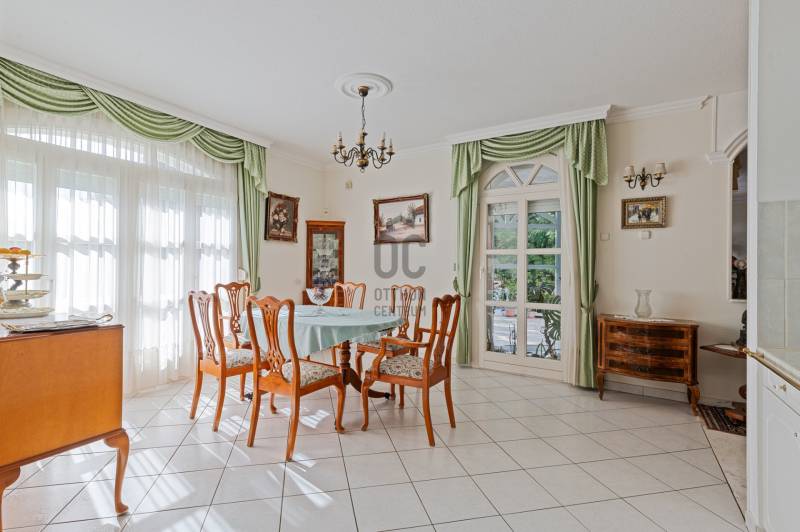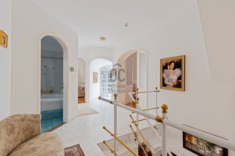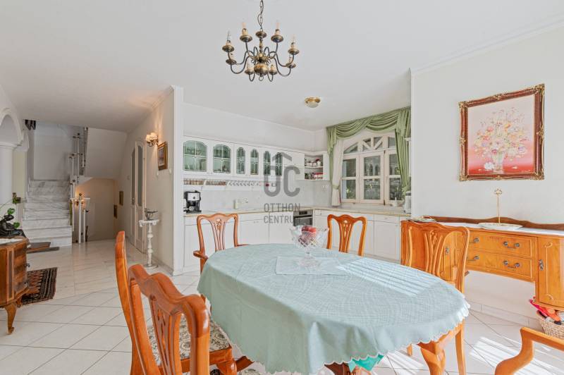 Fedezze fel ezt a rendkívüli adottságokkal rendelkező, összesen több mint 370 m²-es családi villát, amely a nyugalom és kényelem szigetét kínálja, miközben néhány perc alatt elérhető a főváros minden fontos pontja.A tágas belső terek, az igényes anyaghasználat és a modern technikai megoldások együttesen biztosítják az elegáns, mégis otthonos életérzést.Főbb paraméterek:Alagsor összesen: 138,69 m²garázs: 30 m²3 tároló, szauna, zuhanyzógépészet és hulladéktárolóFöldszint összesen: 174,60 m²nappali, étkező, konyhaszoba: 41,22 m²fürdőszoba, WCközlekedő, tárolóhelyiségekEmeleti szint összesen: 120,48 m²3 külön nyíló hálószoba (40,5 m² | 22,87 m² | 21,87 m²)2 fürdőszoba és WC2 teraszExtrák, amelyek emelik az ingatlan presztízsét:saját szauna és kandallóautomata öntözőrendszermotoros kert- és garázskapumotoros redőnyökúj, hőszivattyús fűtési rendszerhűtő-fűtő klímariasztórendszer és kamerás megfigyelésElhelyezkedésAz ingatlan különlegessége, hogy autóval és tömegközlekedéssel is könnyedén megközelíthető. A közelben minden megtalálható, ami a mindennapi kényelemhez szükséges: óvoda, iskola (magyar, angol, francia, waldorf), bevásárlóközpont, éttermek, uszoda, sportolási lehetőségek.A Széll Kálmán tér mindössze fél órán belül elérhető.AjánlásEz a villa ideális választás mindazoknak, akik Budapest központjához közel, mégis a természet ölelésében, magas presztízsű környezetben szeretnék megtervezni családjuk jövőjét.Kiváló befektetés is, hiszen az ingatlan iroda, rendelő vagy akár elegáns céges központ céljára is tökéletesen alkalmas.Megtekintéséhez időpont egyeztetés szükséges.Keressen bizalommal telefonon – gyorsan reagálok megkeresésére! |
