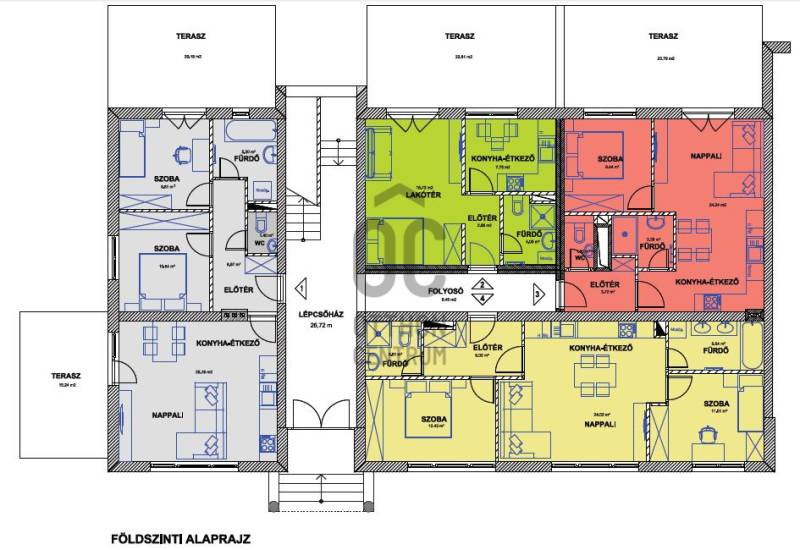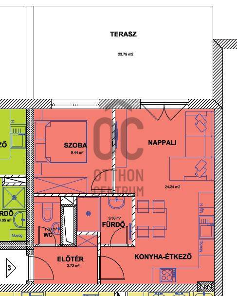 Tisztelt Érdeklődő!Makón, a Liget Lakóparkban jelenleg is zajlanak azok az átalakítási és felújítási munkálatok, amelyek egy teljesen megújult, modern földszinti lakást fognak eredményezni! Ez azt jelenti, hogy Ön lesz az elsők között, aki birtokba veheti ezt a világos, praktikus elrendezésű otthont – vadonatúj állapotban.Az ingatlan a Liget utcában, egy zárt lépcsőházas, 16 lakásos társasházban található. A belváros autóval mindössze 3 perc, kerékpárral 5 perc, gyalog körülbelül 17 perc alatt érhető el, így minden fontos intézmény és szolgáltatás gyorsan megközelíthető. Bevásárlási lehetőségek, óvoda, iskola és buszmegálló néhány száz méterre található, ami a mindennapokat igazán kényelmessé teszi. A társasház földszintjén eladó egy 43 m²-es, téglaépítésű lakás, amely teljeskörű megújuláson megy keresztül. A teljes áram-, víz- és csatornahálózat új, gáz nincs bekötve a lakásba, azonban a fűtés házközponti, gázzal üzemelő rendszerrel történik. A hőfokszabályzós radiátorokon keresztül működő rendszer lakásonként egyedi hőmennyiség-mérőkkel rendelkezik, így minden lakó saját fogyasztása után fizet. A lakás bútorozatlanul, beépített gépek nélkül kerül átadásra, ugyanakkor a nagyobb háztartási gépek szükséges csatlakozásai és kiállásai már kiépítésre kerülnek, így az új tulajdonos saját ízlése szerint alakíthatja ki otthonát.Az ingatlan elrendezése rendkívül praktikus: egy 9,44 m²-es szoba, egy 24,23 m²-es nappali–konyha–étkező, előtér, valamint külön zuhanyzós fürdőszoba és külön WC szolgálja a kényelmet. A nappali közvetlen kapcsolatban áll a 24 m²-es terasszal, amely kellemes plusz életteret biztosít.A szoba, a nappali–konyha–étkező és az előtér laminált padlós burkolatot kap, míg a fürdőszoba és a WC járólappal készül. A burkolatok mintái az irodában megtekinthetők. A melegvíz-ellátást korszerű okosbojler biztosítja, a lakásban 1 darab klímaberendezés kerül kiépítésre, a háromrétegű, hőszigetelt műanyag nyílászárók pedig a korszerű energiafelhasználást segítik. A lakáshoz közös tároló nem tartozik, ugyanakkor a kerékpárok számára udvari tárolási lehetőség biztosított. A parkolás jelenleg díjmentesen az utcán megoldható, azonban saját parkolóhely is vásárolható telekhatáron belül.A lakópark legkésőbb 2026. május 31-én kerül átadásra, ezt követően a lakás akár azonnal költözhető. Így még bőven van idő arra, hogy megtervezze, hogyan szeretné berendezni új otthonát.Az alaprajzokon feltüntetett négyzetméterek tájékoztató jellegűek, a végső adatok kisebb mértékben változhatnak. Hívjon most, és foglaljon időpontot még ma! Legyen az Öné ez a lakás!Részletes műszaki tájékoztatás és a fizetési ütemezés személyesen, az irodánkban elérhető.Makóról bővebben itt: http://mako.hu/makoi-seta/Legyen tisztában pénzügyeivel, mielőtt elkötelezi magát! Ebben díjmentesen az Ön rendelkezésére áll bankfüggetlen hitelközvetítőnk.Vevőinket profi és kedvező díjazású ügyvédi háttérrel is segítjük a szerződéskötés során.#otthoncentrummako #makoiingatlan #eladolakas #makoeladolakas #ingatlan #otthoncentrum #ingatlanpiac #otthon #hagymatikum #forsale #oc #hitel #ocmako #biztositas #realestate #veledmindenlepesnel #homesweethome #ingatlankozvetites #almokatepitunk #koltozes #felujitottlakas |