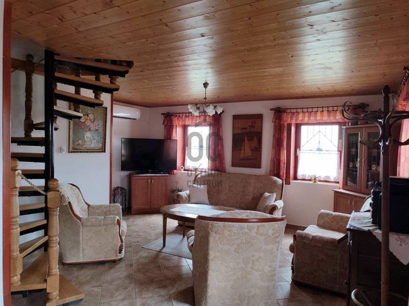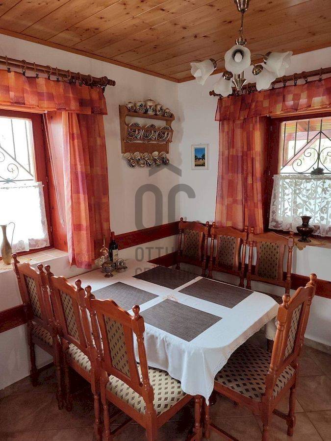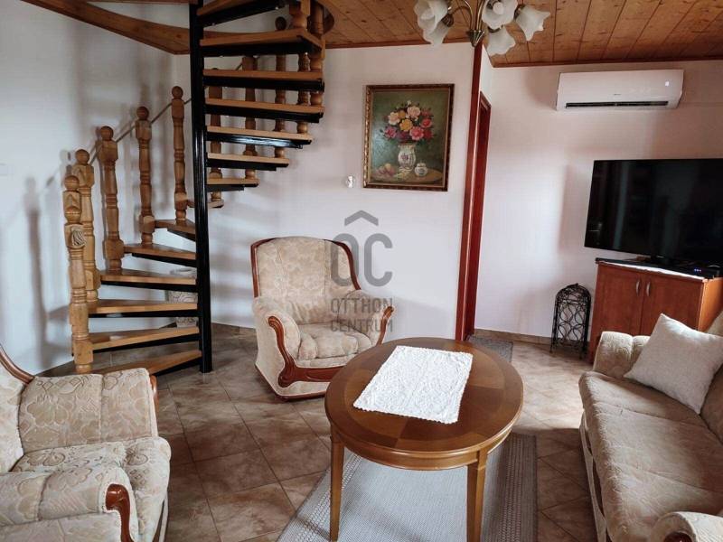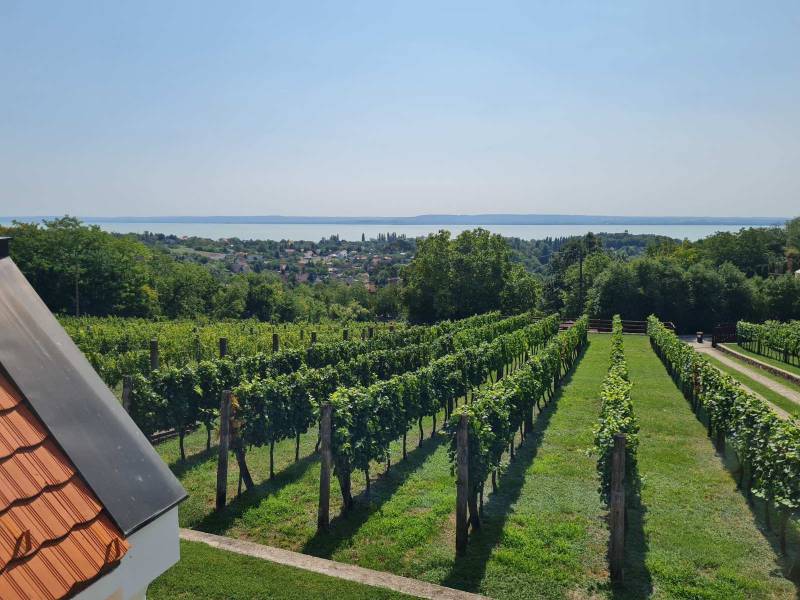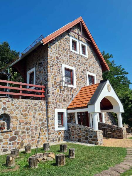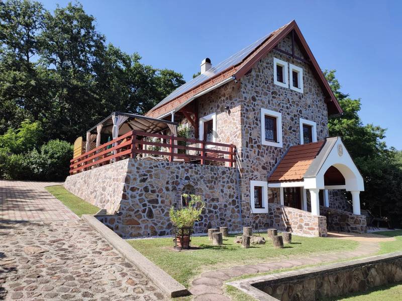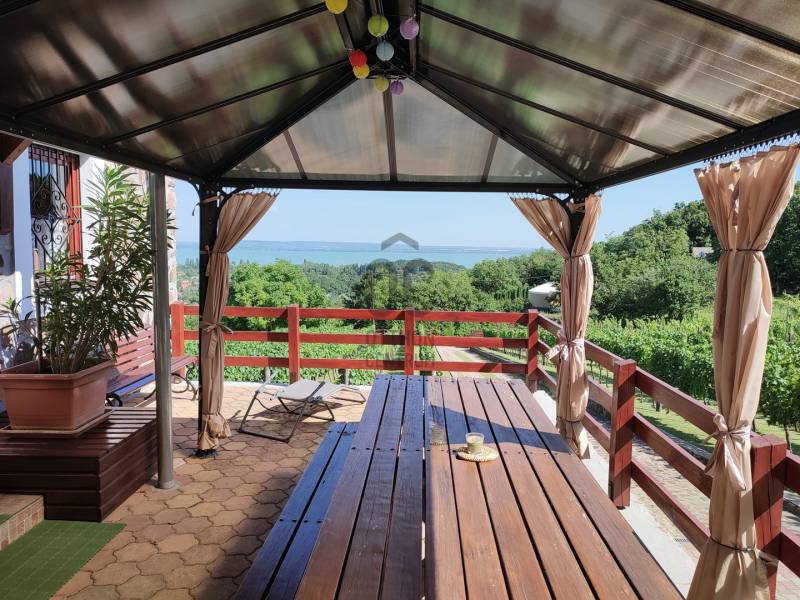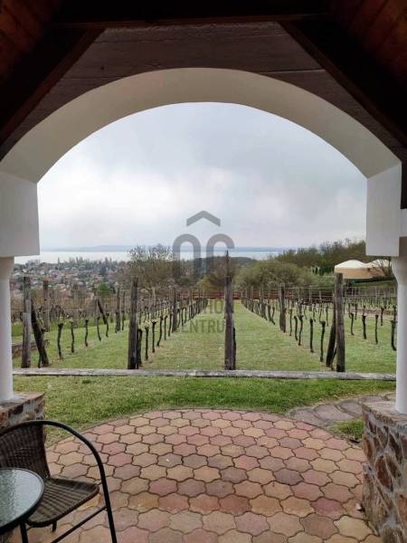 KIEMELT MEGBÍZÁS AZ OTTHON CENTRUM KÍNÁLATÁBAN!Ábrahámhegy festői környezetben a Balaton északi partján a nyugat felől magasodó Örsi hegy és a Tapolcai-medence tanúhegyeinek karéjában fekszik. A táj ősidők óta hazája a szőlőnek és a bornak és a nyári időszakban itt található a környék egyik legkedveltebb fürdőhelye is.A település egyik legmagasabb pontján vált eladóvá ez a különleges kialakítású, Balaton-felvidéki hangulatot árasztó ingatlan a hozzá tartozó 2067 m²-es szőlős területtel.A terület télen-nyáron jól járható úton közelíthető meg, teljesen körbekerített. A telekre betelepített Szürkebarát szőlő folyamatosan gondozott, karbantartott. Az utcafronti részt terméskő kerítés határolja, ez a kőmunka folytatódik az autófeljárón és a támfalakon, valamint a ház egészét is helyi \"vöröskő\" burkolja körbe, így kölcsönözve egyedi és tájba illő hangulatot a birtoknak.A gazdasági épületként bejegyzett ház 2005-ben épült, 3 szinten összesen 146 m²-es hasznos területtel rendelkezik. Az 50 cm-es kő-tégla falakkal rendelkező masszív épület szintjei épületen belül átjárhatóak. A házba hűtő-fűtő klímák kerültek betelepítésre, melyek áramellátását a kiépített napelemrendszer biztosítja, ezenfelül a fűtés a ház alsó- és földszinti részén fatüzelésű kályha használatával is kiegészíthető.A ház szintenkénti elosztása:Alsó szint: konyha, étkező, nappali/ háló, fürdőszoba, tároló, egyedi kialakítású, hangulatos borospinceFöldszint: nappali, étkező, konyha, fürdőszoba, lépcsőház és terasz.Emelet: 3 hálószoba és előszobaA házban riasztórendszer került kiépítésre. Az áram valamint a vezetékes víz bevezetésre került, szennyvíz derítő áll rendelkezésre a szennyvízelvezetéshez. Az esővíz gyűjtésére 2 ciszterna is kialakításra került, melyekből a locsolás könnyedén megoldható.A földszinti részhez kapcsolódó - nyári időszakban plusz életteret biztosító - hatalmas teraszról, de a telekről és a ház egészéből is teljes rálátást kapunk az előttünk elterülő Balaton vizére!A zárt parkolórészen és fedett kocsibeállón több autó egyidejű parkolása is lehetséges.Ajánlom az ingatlant mindazok figyelmébe,akik a \"béke szigetét\" keresik távol a mindennapoktól. A ház tökéletes nyaralónak, turisztikai befektetésként is vonzó lehet és állandó lakhatásra is alkalmas!Amennyiben kérdése merülne fel az ingatlannal kapcsolatban vagy szeretné azt megtekinteni, kérem keressen a megadott elérhetőségek egyikén! |