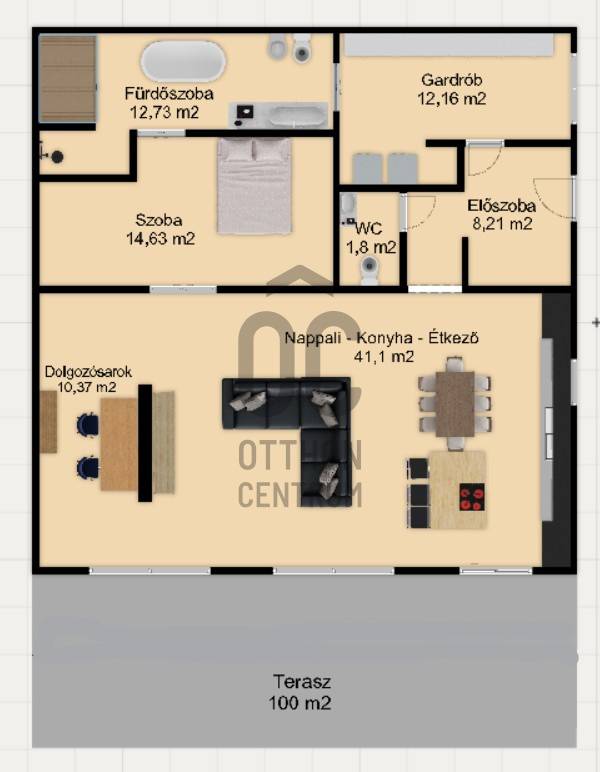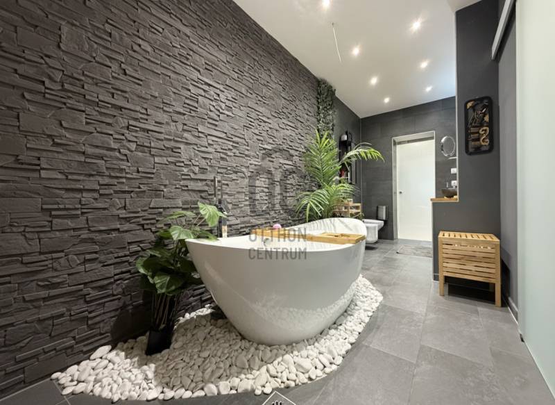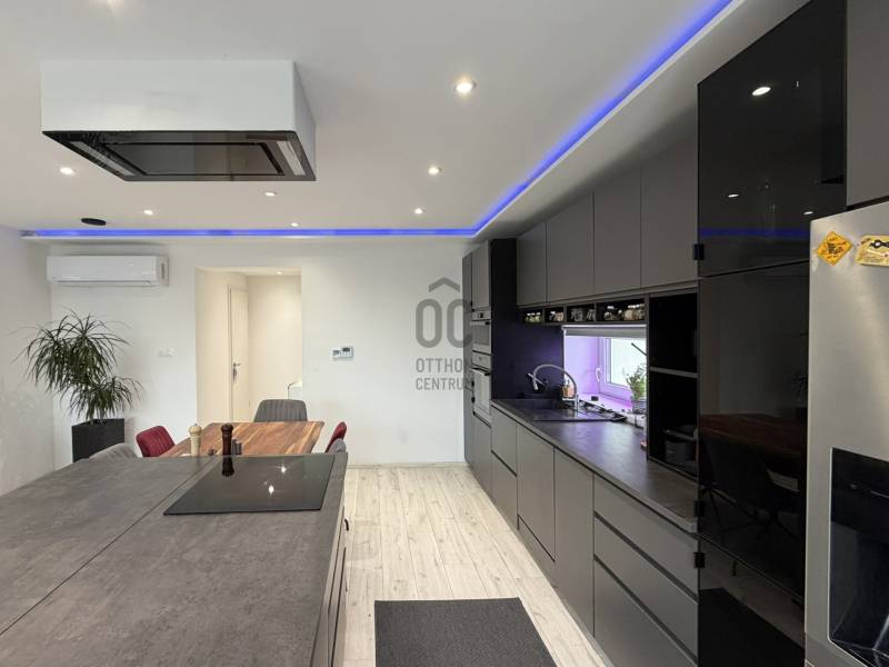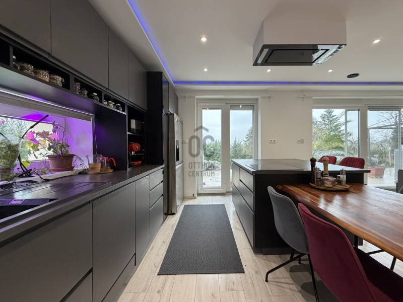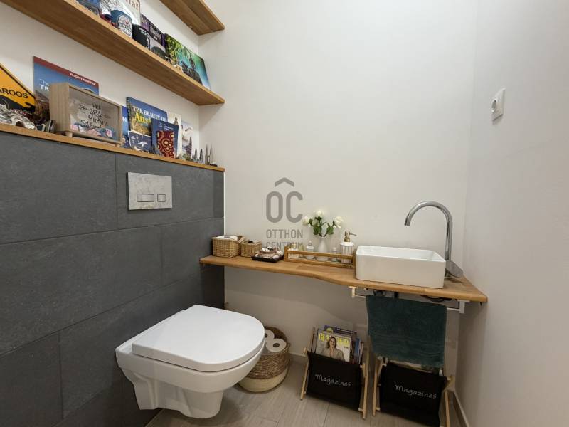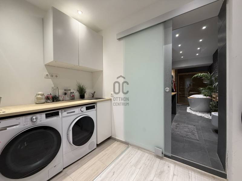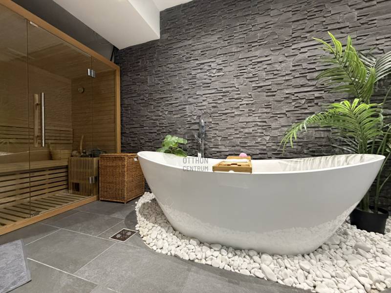 Budán, Testvérhegy egyik forgalomtól elzárt, hangulatos zsákutcájában kínálunk bérbe egy igényesen felújított, külön bejáratú házrészt. Az ingatlanhoz egy körülbelül 600 m²-es, saját használatú kertrész tartozik, amelyet egy elegáns, 100 m²-es privát terasz egészít ki – így a szabadtéri pihenés, a reggeli kávé vagy az esti borozás is tökéletes helyszínt kap.A házrész nettó 101 m²-es, modern, letisztult belső terekkel rendelkezik. A tágas amerikai konyhás nappali a mindennapok központja, amely harmonikusan kapcsolódik a kert látványához. A hálószoba kényelmes és csendes, mellette pedig egy dolgozósarok biztosít ideális helyet az otthoni munkavégzéshez. A fürdőszoba különleges élményt nyújt a káddal, a zuhanyzóval és a saját szaunával, míg a gardróbszoba – igény esetén – akár második hálószobává is alakítható. A lakást egy előszoba és egy különálló WC teszi teljessé. A teljesen felújított belső tér modern, igényes és barátságos hangulatot áraszt.Az elhelyezkedés kiemelkedő: Testvérhegy zöldövezeti nyugalma a főváros egyik legkeresettebb atmoszféráját biztosítja, miközben a közeli buszjáratokkal Óbuda, Békásmegyer és a HÉV gyorsan és kényelmesen elérhető. A környék csendes, biztonságos, rendezett, tökéletes azoknak, akik szeretnének kiszakadni a város zajából, de nem mondanának le a könnyű megközelíthetőségről.A bérleti díjon felül a rezsiköltség mindössze havi 40.000 forint, amely minden közműdíjat magában foglal, így a havi kiadások teljes mértékben kiszámíthatóak és átláthatóak.Ha egy modern, természetközeli, saját kertkapcsolattal rendelkező, exkluzív házrészt keres Testvérhegyen, akkor ez az ingatlan ritka és kivételes lehetőség. Szívesen küldök további részleteket vagy egyeztetek időpontot a személyes megtekintésre. |