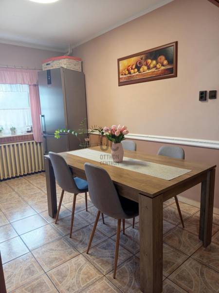 Az ingatlan 1988-ban épült, és méreteivel, elrendezésével, valamint a hozzá tartozó hatalmas telekkel igazán sok lehetőséget kínál új tulajdonosa számára akár családi otthont, akár gazdálkodási célokat keres.Stabil, masszív szerkezet:A ház tetőszerkezete Bramac tetőcseréppel ellátott, kiváló állapotban van.Terasz: 4 éve épült, modern, esztétikus.Klíma: mindössze 2 éves, a lépcsőnél került elhelyezésre, így a ház egészét képes hatékonyan hűteni.Bejárati ajtó: kb. 8 éve lett cserélve.Felújított szoba: az egyik helyiség teljeskörűen megújult ( új burkolat, modern, 3 rétegű hangszigetelt nyílászáró, valamint új villanyvezetékek kerültek beépítésre)Vegyestüzelésű kazán: 8 éves, megbízható és gazdaságos fűtési lehetőség, amely kedvező rezsiköltséget biztosít. Igény szerint gázkazán is beszerelhető, így kétféle fűtés is választható lenne.Kiváló elrendezés, praktikus és élhető terek:A földszinten minden a kényelmet szolgálja:- előszoba- külön WC- tágas, világos konyha- hangulatos nappali- nappaliból nyíló kazánház, amely a garázsba vezet továbbEmeleten:- közlekedő- 4 hálószoba ( egyik szobából nyílik az erkély)-fürdőszoba-wcEz az elosztás ideális mindennapi használatra, a garázs és a kazánház közvetlen kapcsolata pedig különösen praktikus a hidegebb hónapokban.Hatalmas telek, két helyrajzi számmal + istálló Az ingatlan különlegessége a rendkívül nagy terület:1012 m²-es telek, valamint további 600 m², külön helyrajzi számon.A telken egy 160 m²-es istálló is található, amely kb. 25 éve épült. Jelenleg is állattartásra használják, így azoknak ideális, akik gazdálkodni szeretnének, vagy melléképületként hasznosítanák.A vegyestüzelésű kazánnak köszönhetően az ingatlan fenntartási költségei kedvezőek. A bútorok megegyezés szerint maradhatnak, ami tovább könnyítheti a beköltözést.Ez a Kisigmándi családi ház tökéletes választás azoknak, akik tágas telekkel rendelkező, stabil szerkezetű otthont keresnek, amely gazdálkodásra és családi életre egyaránt alkalmas.Kisigmánd kis közösség, nyugodt falusias környezetben. Ideális lehet azoknak, akik vidéki, csendes életet keresnek, de nem túl messze a nagyobb városoktól. Közlekedés szempontjából előnyös: az M1-es autópálya mentén fekszik, vasúti megközelítés is lehetséges: a közeli Bábolna-Nagyigmánd vasútállomás kb. 4 km-re található.Amennyiben felkeltette érdeklődését az ingatlan, további információért illetve megtekintéssel kapcsolatban várom hívását. |