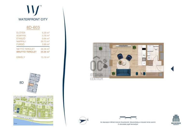 Projekt bemutatásaA projektrőlA Waterfront City egy új, modern városnegyed a 3. kerületben, ahol a természet közelsége és a városi kényelem tökéletes egyensúlyban van. A Duna-part közvetlen szomszédságában elhelyezkedő fejlesztés különleges atmoszférát kínál: a sétányt új épületek határolják, üzletekkel, kávézókkal és szolgáltatásokkal, amelyek élhető közösségi teret teremtenek.A 13 emeletes lakóépületből lenyűgöző örökpanoráma nyílik a budai hegyekre és a folyóra, a tágas teraszok pedig ideálisak a pihenéshez vagy a baráti összejövetelekhez. A zöldtetők, parkosított terek és fenntartható megoldások – mint az energiatakarékos rendszerek és okos otthon funkciók – mind hozzájárulnak a modern, környezettudatos életstílushoz.Látogass el értékesítési irodánkba, és tekintsd meg a városnegyed makettjét személyesen! Ismerd meg, milyen lesz az élet Budapest egyik legizgalmasabb új fejlesztésében!Óbuda szívébenKépzeld el, ahogy egy napsütéses délelőttön Óbuda szívében sétálsz, a Duna közelsége frissítően hat rád, miközben a Folyamőr utca, a Miklós tér és a Bogdáni út által határolt, öt hektáros területre érsz. A levegőben ott van a város történelme, mégis minden részletében a jövő hívogat.A 50 000 négyzetméteres területen egy hangulatos sétány vezet végig, amely egyenesen az óbudai Fő térre visz – mindössze 600 méterre. Ez a sétány nem csupán összeköt, hanem élményt nyújt: a Kolosy térről induló Óbudai Promenád részeként a város egyik legélhetőbb, legpezsgőbb szakaszán haladsz végig. És ha biciklivel érkeznél? A nemzetközi kerékpárút is itt halad el, Szentendre felé vezetve.Az 5. ütemben épülő 149 lakás mindegyike egyedi hangulatot kínál. Ahogy belépsz egy-egy otthonba, a hatalmas üvegfelületeken át beáradó fény és a tágas, szellős terek azonnal magukkal ragadnak. A kilátás? A Kaszap István park zöldje nyújt békét, míg a felsőbb emeletekről a Budai-hegység örökpanorámája tárul eléd – minden nap egy új festmény az ablakodban.A 6. ütemben 316 modern lakás épül, tágas teraszokkal és lenyűgöző kilátással a Dunára és a budai hegyekre. A lakók kényelmét őrszolgálat, kamerarendszer, mélygarázs, vendéglátóhelyek, belső park, játszótér és E-autó töltők szolgálják. Ez a projekt utolsó üteme, amely még közvetlen Duna-parti kapcsolattal rendelkezik. |